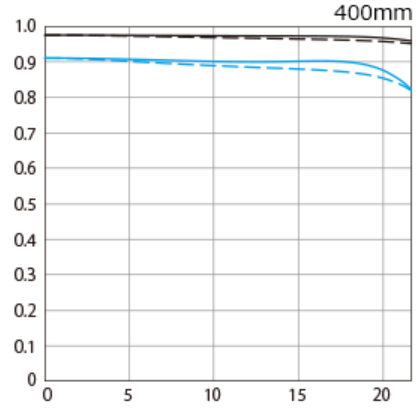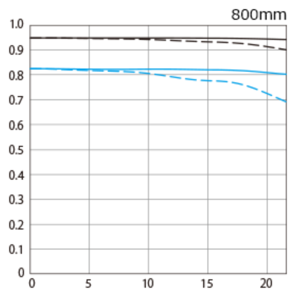 比較するとわかりますがRF800mm F11 IS STMは7mm地点でも落ち幅がかなり大きいですよね。