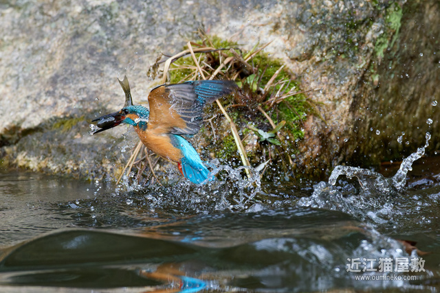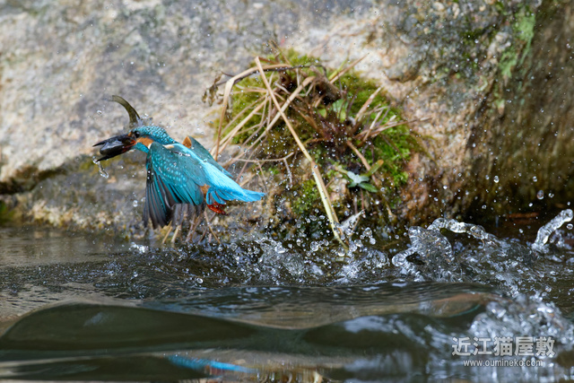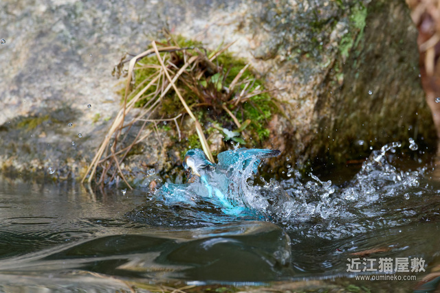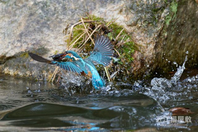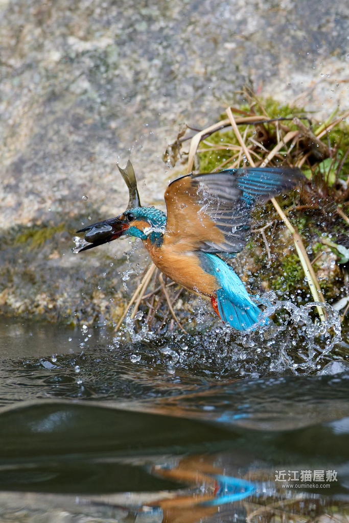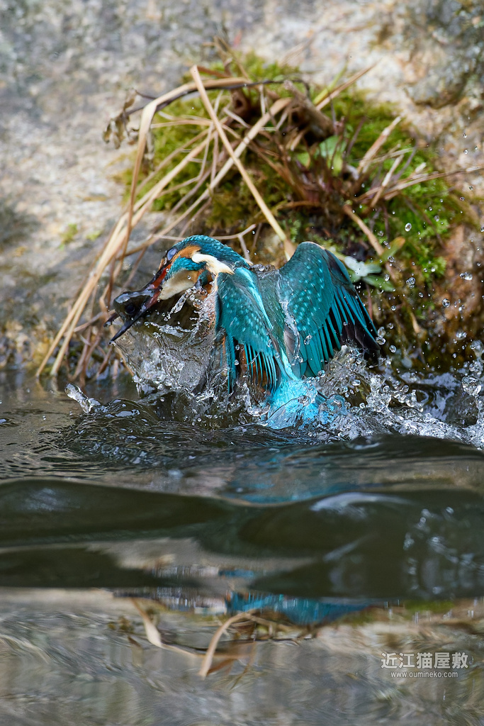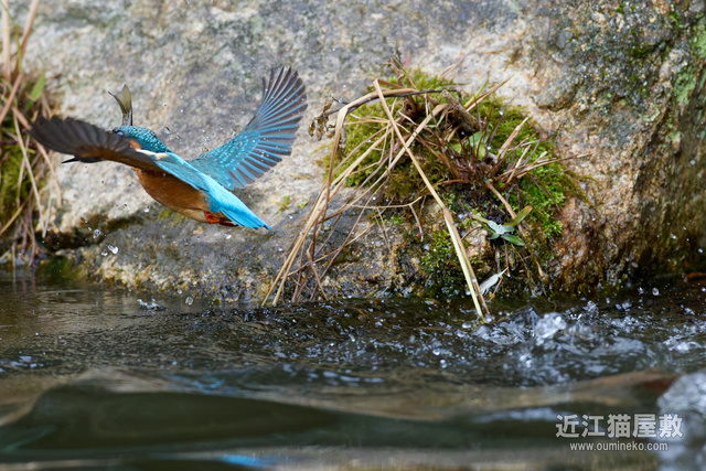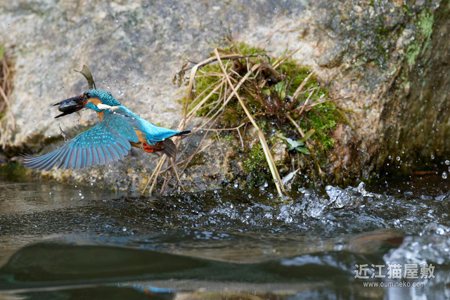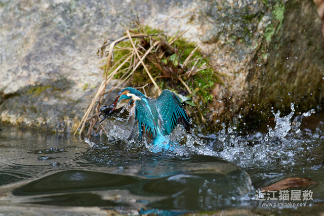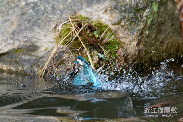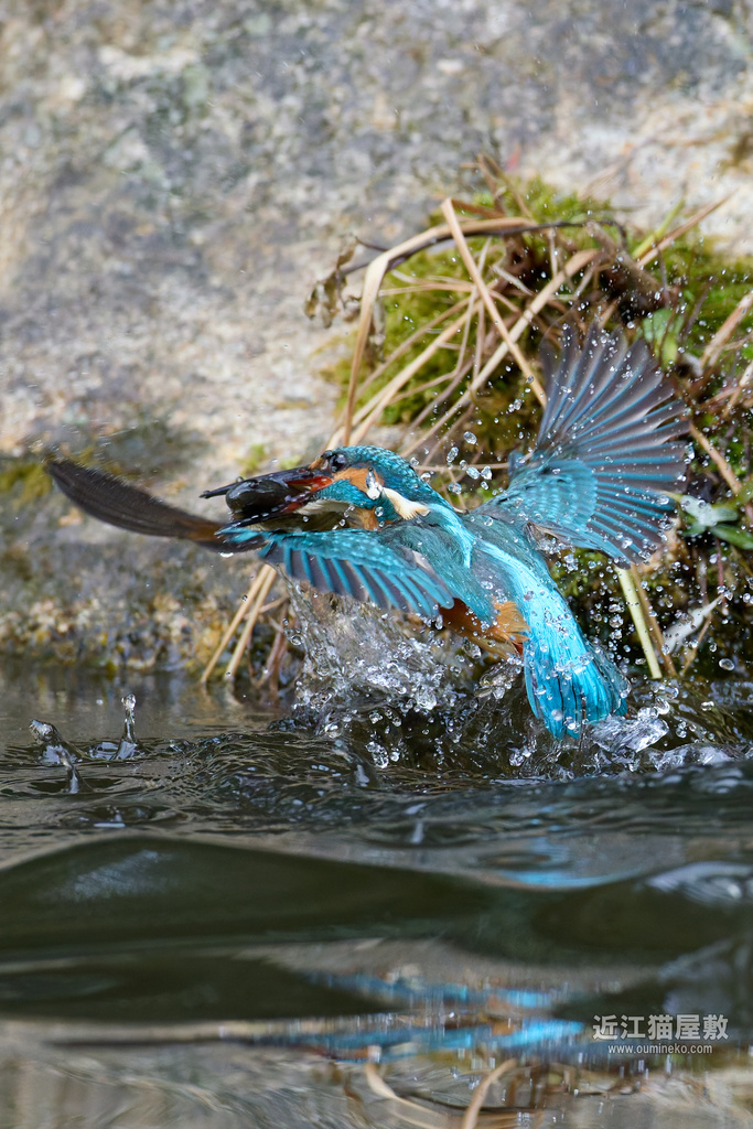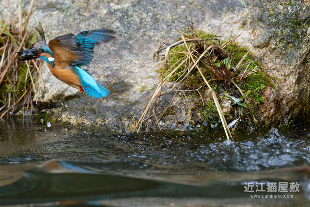 - 後ろに岩があるので確実にフレームの中心にカワセミをとらえ続けねばならない