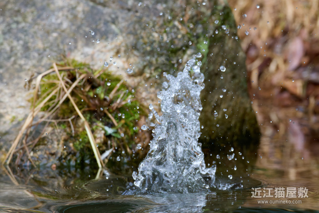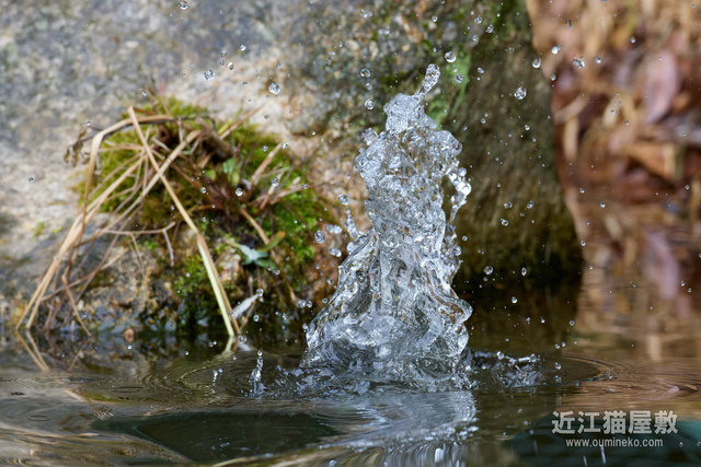 - シャッターのタイミングを水しぶきがあがった瞬間で合わせないと、早くても遅くても岩を掴んでしまう