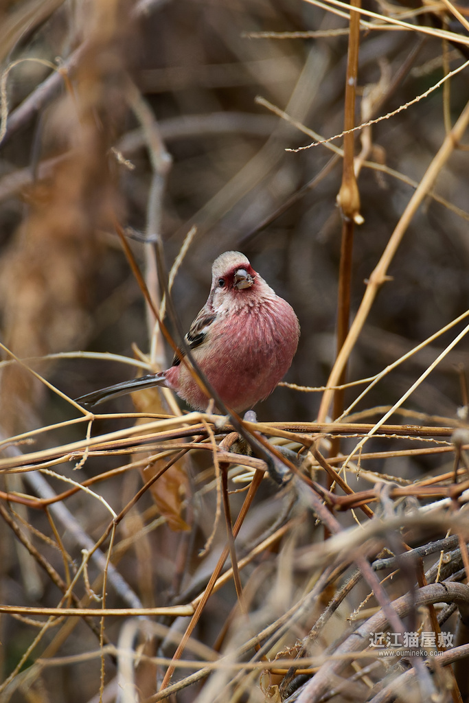 なんでかベニマシコって顔が猿だからか、いつもバクバクしてるからなのか愛嬌ありますよね。