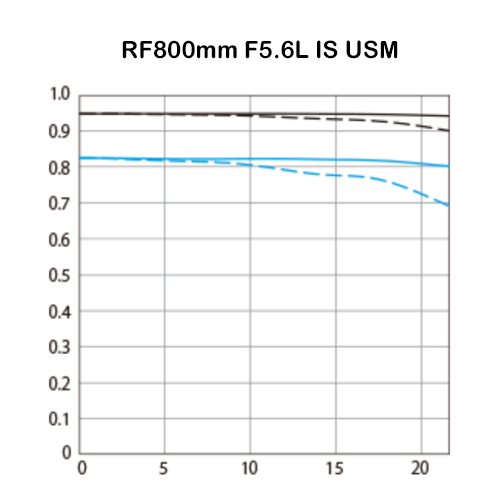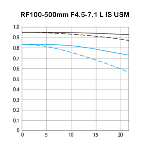 なので、上のMTFはRF100-500mm F4.5-7.1L IS USMをAPS-Cで、その他のレンズはフルサイズで使用すると考えてください。
