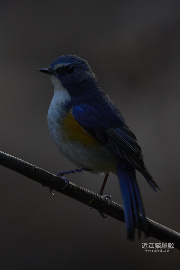 このルリビタキですが相当の悪条件で、ほんの少し背中に朝日が当たり始めたかな?というくらいの薄暗さで撮ってます。