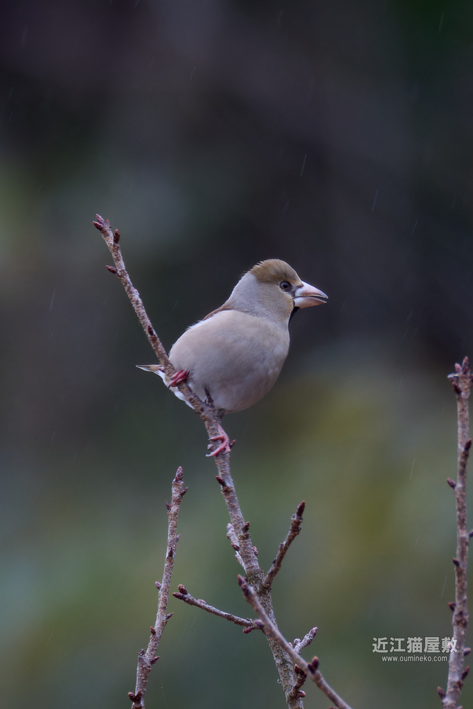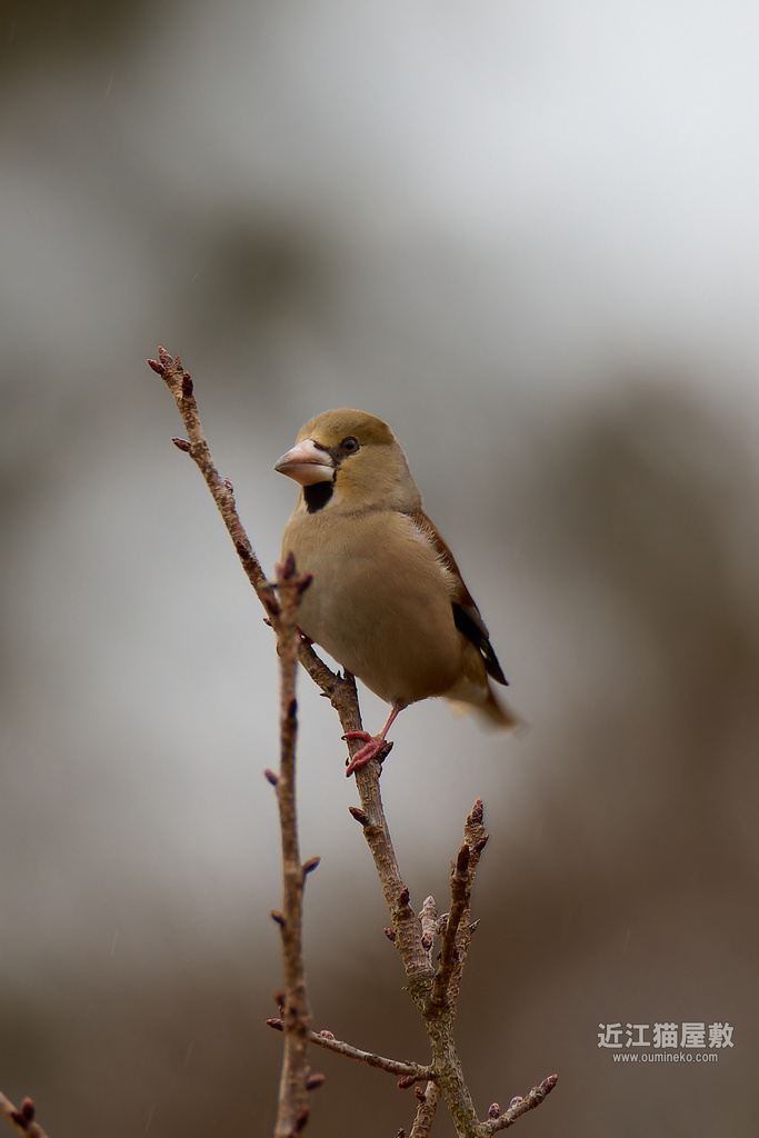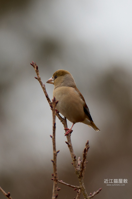 場所をかえようかと落胆気味に小雨の中を歩いていた帰り道で、シメが飛んできて木にとまってくれました。