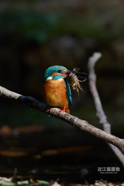 「どこにいるかな~」と思って池を周っていたら、とても大きなザリガニを加えた課長Jr.を発見。