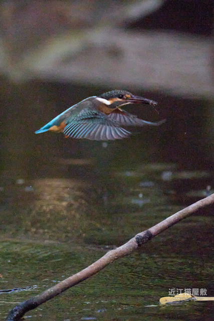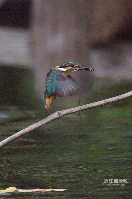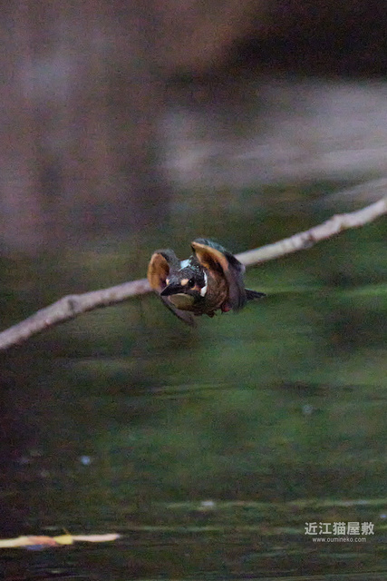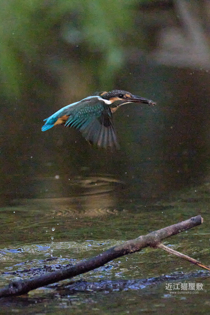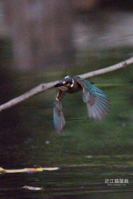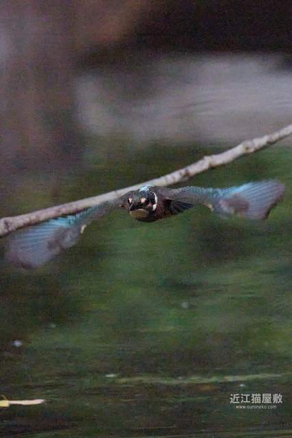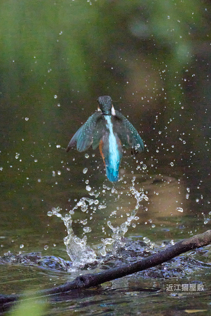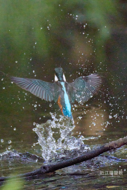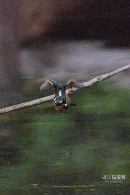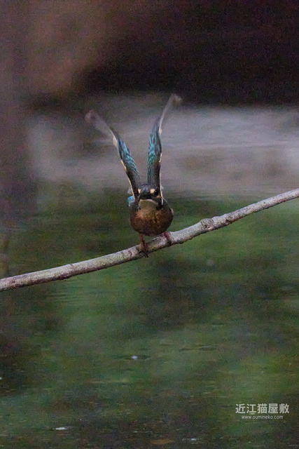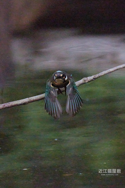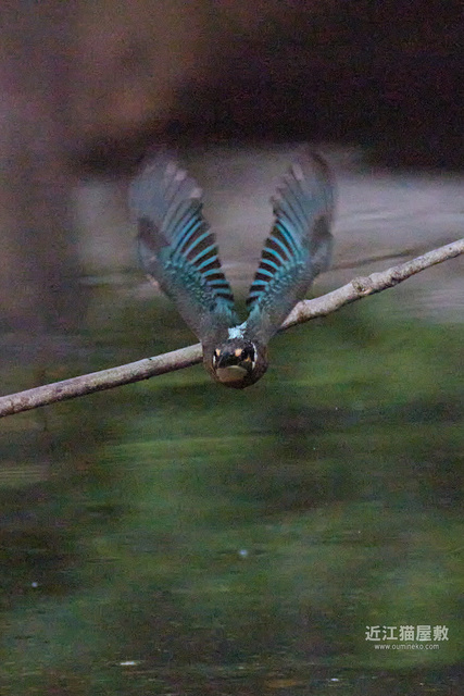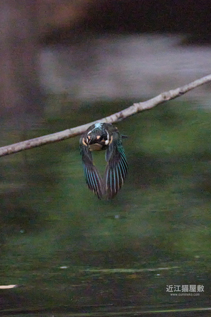 水面から20cmくらいの高さの枝からだったので、まずはホバリングのように上昇。