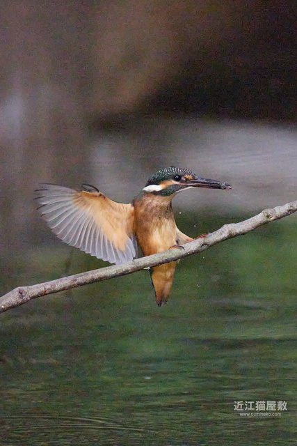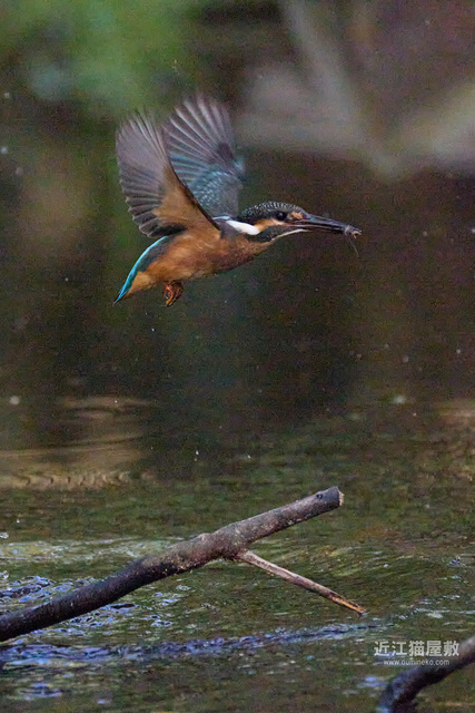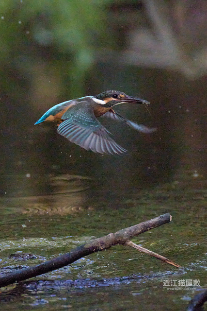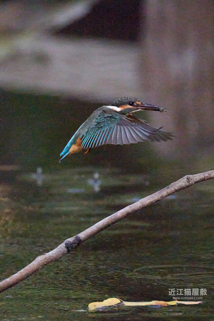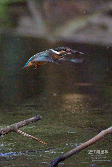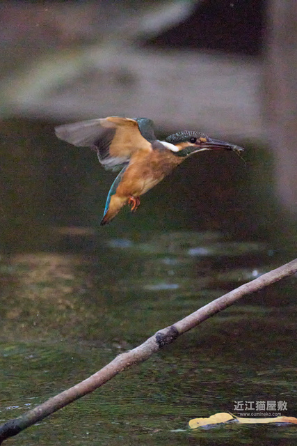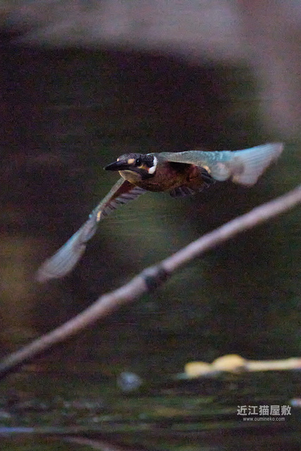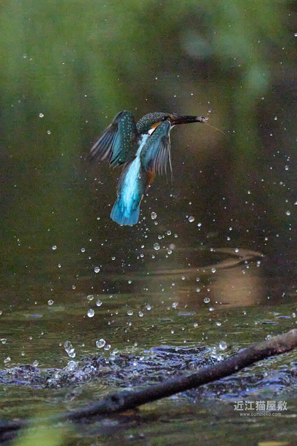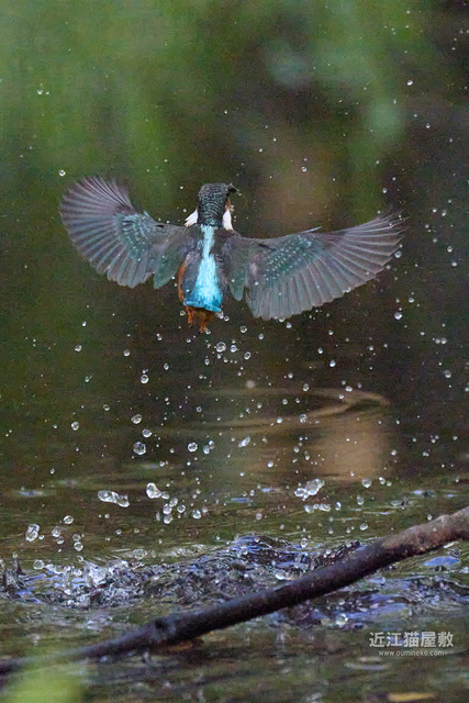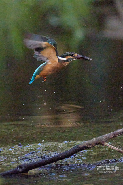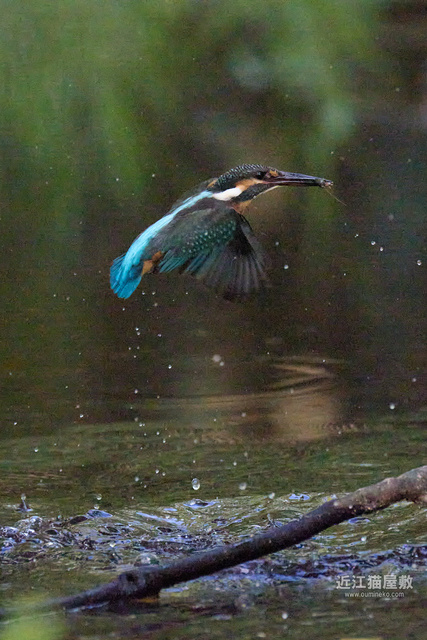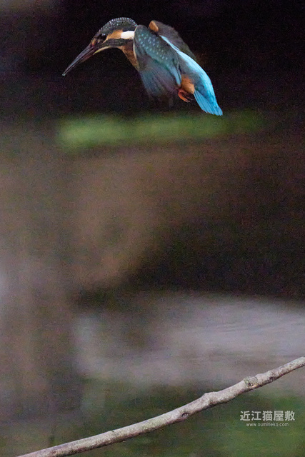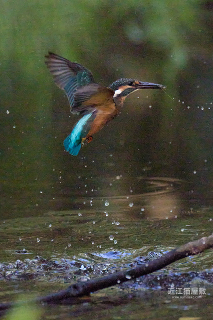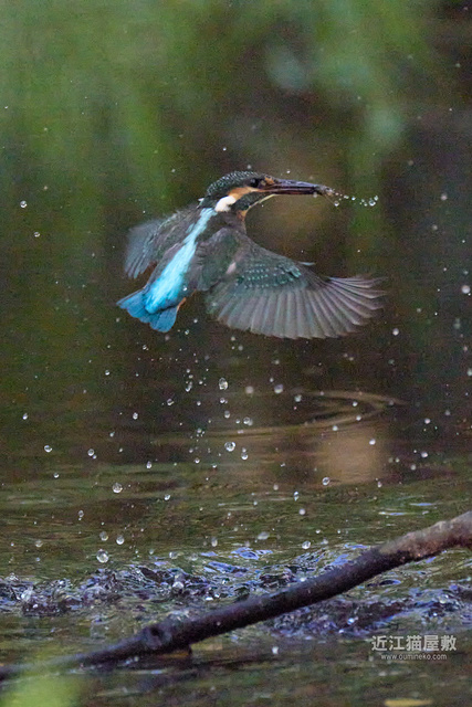 水面から20cmくらいの高さの枝からだったので、まずはホバリングのように上昇。