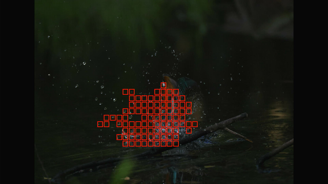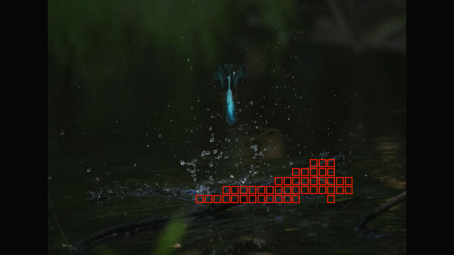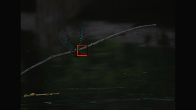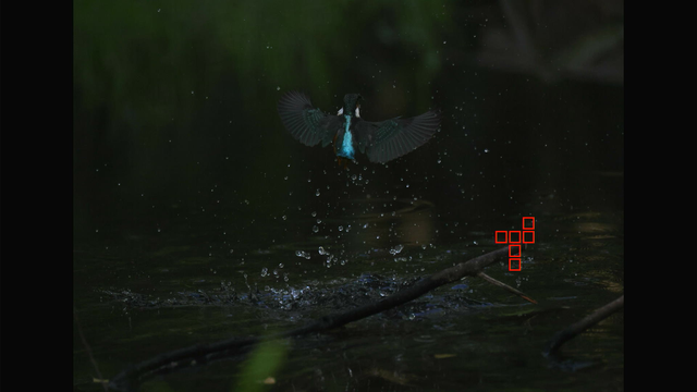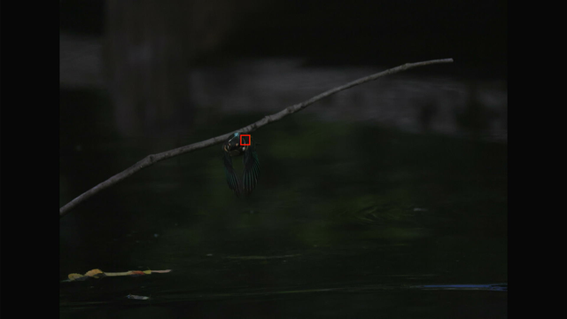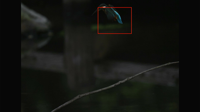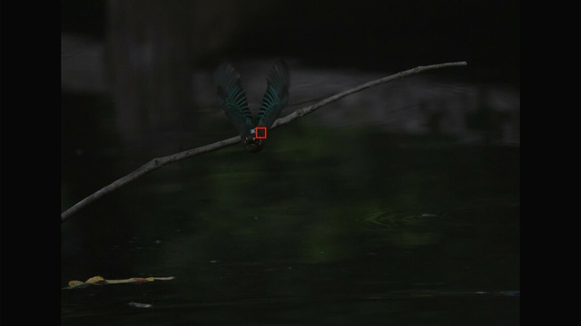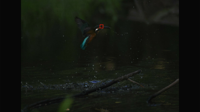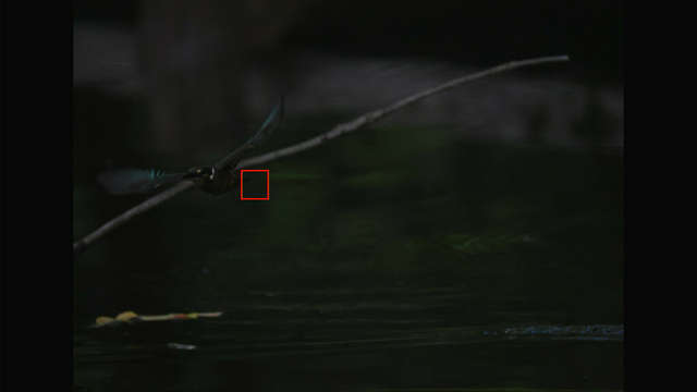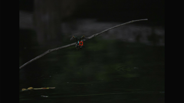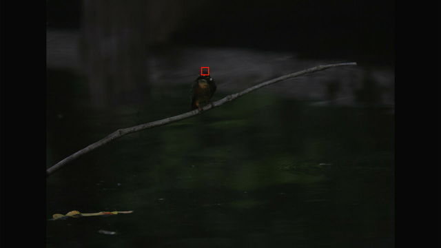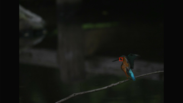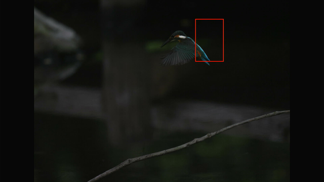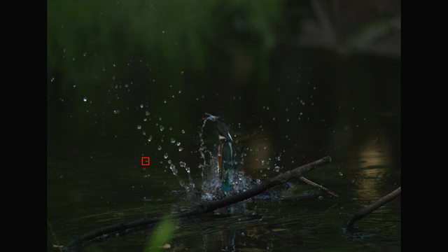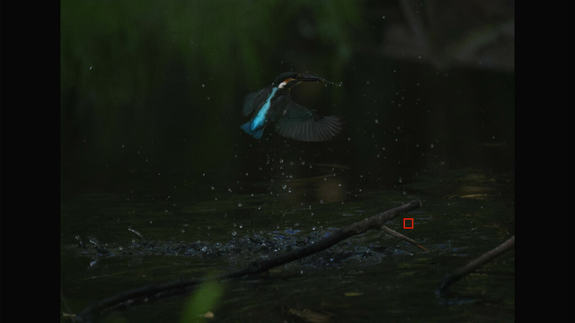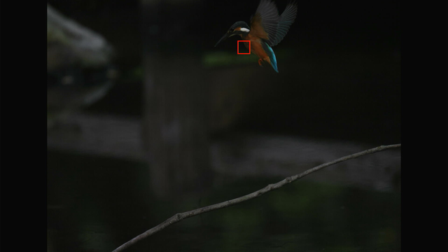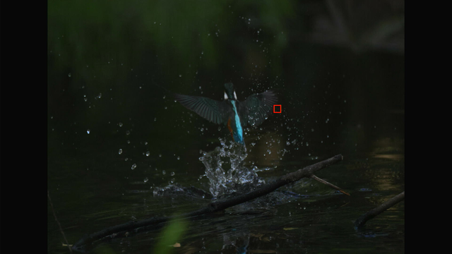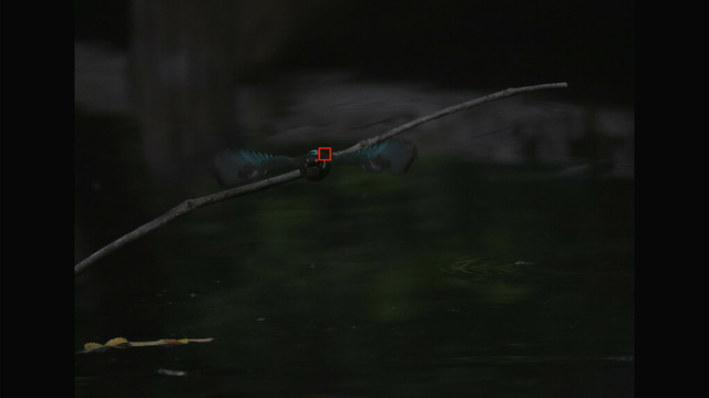 これも昨日確認した通りでカワセミ以外を掴んでる場合でもEOS R3やR7と違って背景に抜けないのと、カワセミを検出できるようになった瞬間にカワセミにトラッキングが移ってるのが素晴らしいですね。
