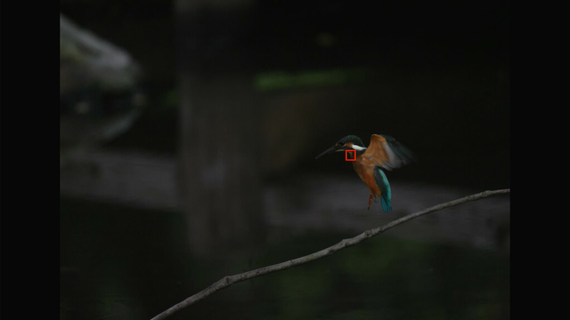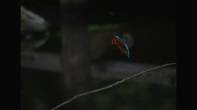 AFスピード的には手前に飛んでくるカワセミの瞳をほぼ完全にとらえていたので、問題ない感じですね。