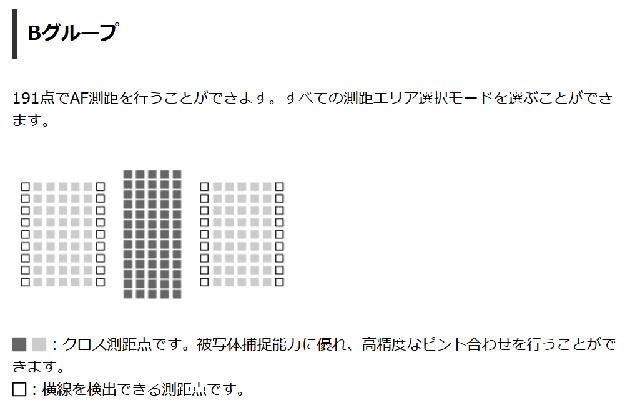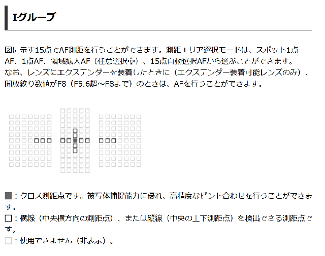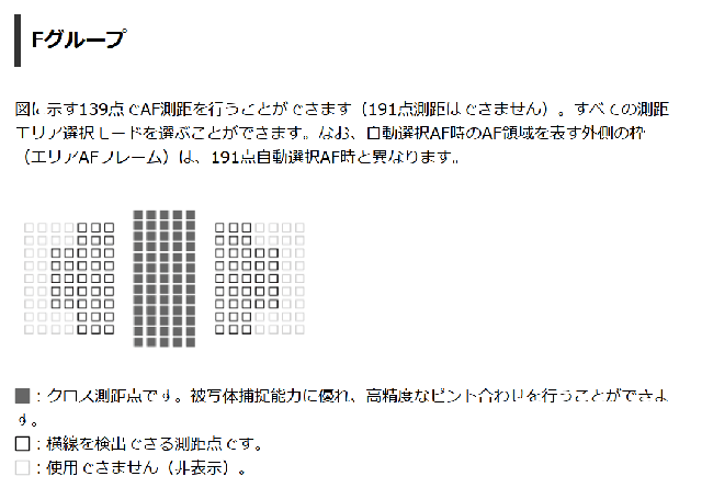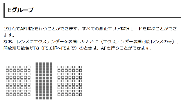 - EOS-1D X mark IIIで、840mmF5.6(Extender x1.4)撮影時にほぼ全191点でクロス測距可能