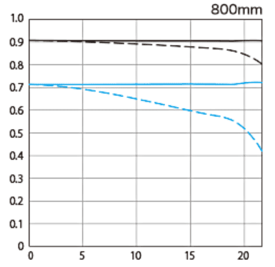 EF600mm F4L IS II/III USM、EF800mm F5.6L IS USMのMTFチャート