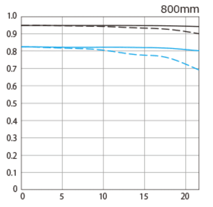 実はEF800mm F5.6L IS USMはRF800mm F5.6L IS USMと比べて中央の解像度は段違いに高いです。