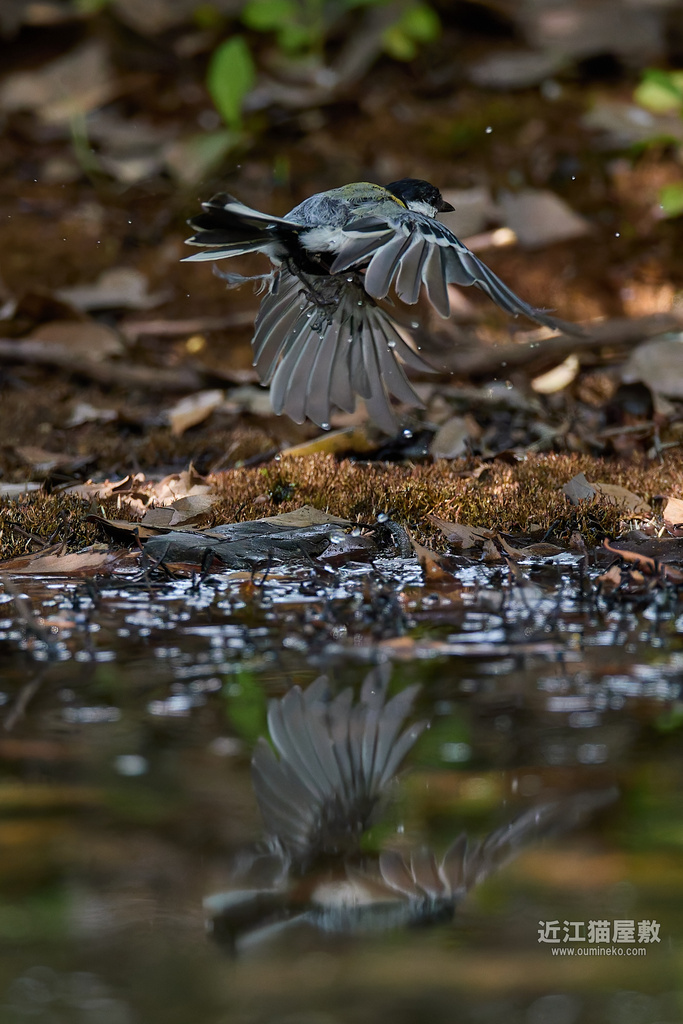 あまりの暑さに、いつものカワセミポイントでは小鳥たちがひたすら水浴びをしてました。