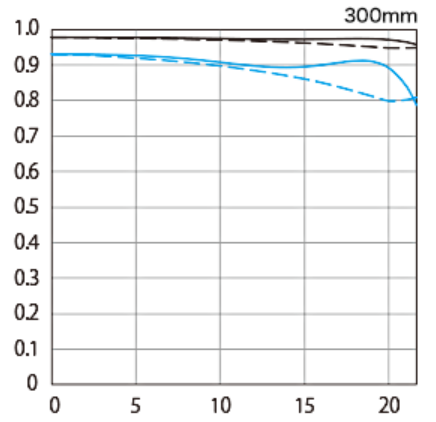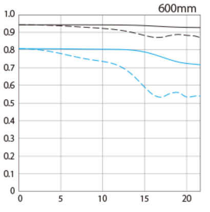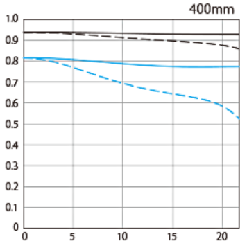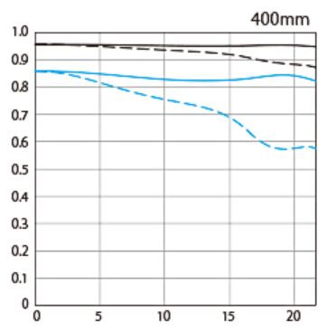 Canonのサイトでは400mmのExtenderなしの波動光学系MTFはなかったので外部Ext1.4だけのときと、さらに内蔵Ext x1.4もON、外付Ext x2時のMTFについて。