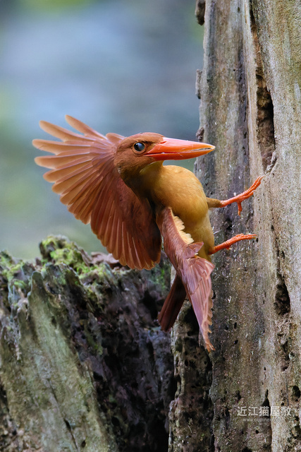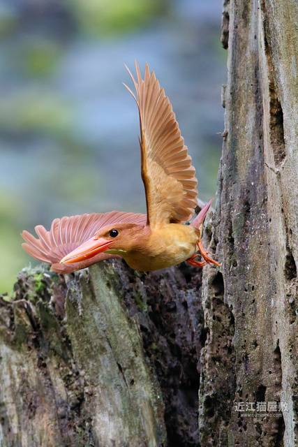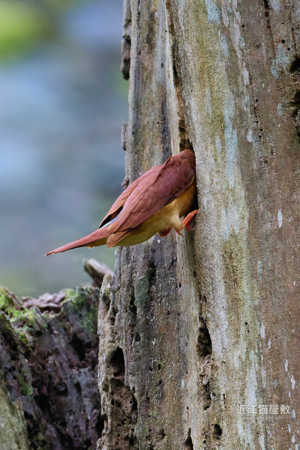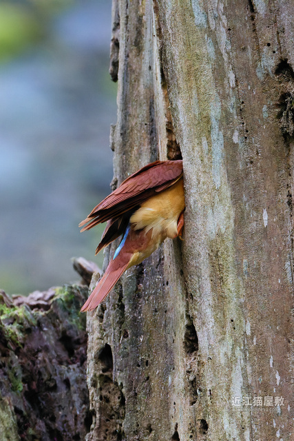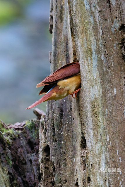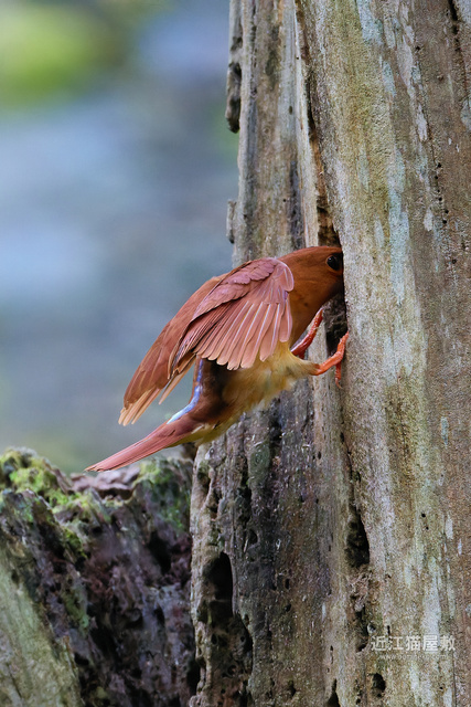 30~40回ほど巣穴に飛んでは近くの枝に戻るという行動を繰り返すアカショウビン。