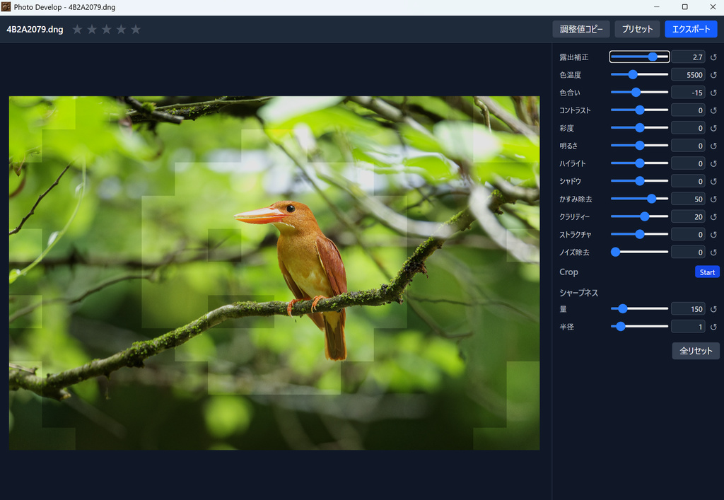ゴールは私が野鳥撮影RAWファイルの現像に使う範囲ではCaptureOne以上の性能を持つこと。