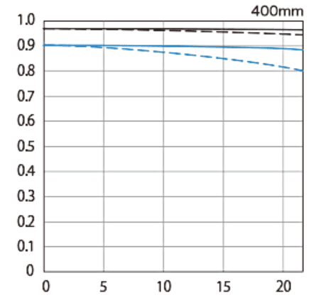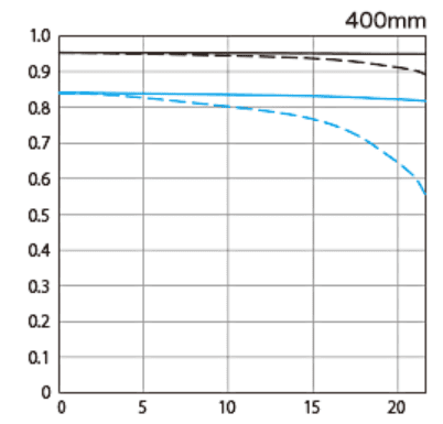 MTFでみるとこのくらいの差があってほぼ中心部を比較していますので、EOS R7 APS-C 3250万画素の場合、30本/mmが 0.83と0.9でここまで違いが出るという事ですね。