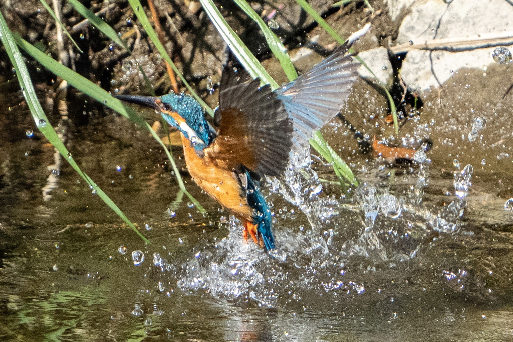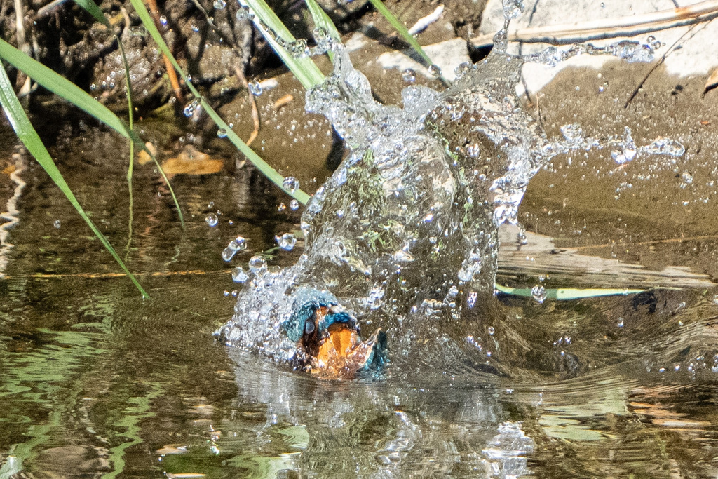 カワセミの飛び込みは30コマにも関わらず連写2ショット目くらいからガチピンです。