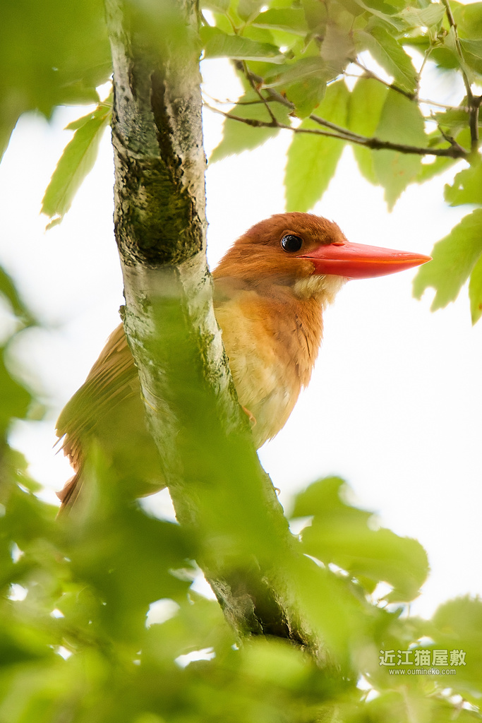 これは本当に目の前の木の上の方にアカショウビンがとまってくれて、枝葉の隙間からパシャリ。
