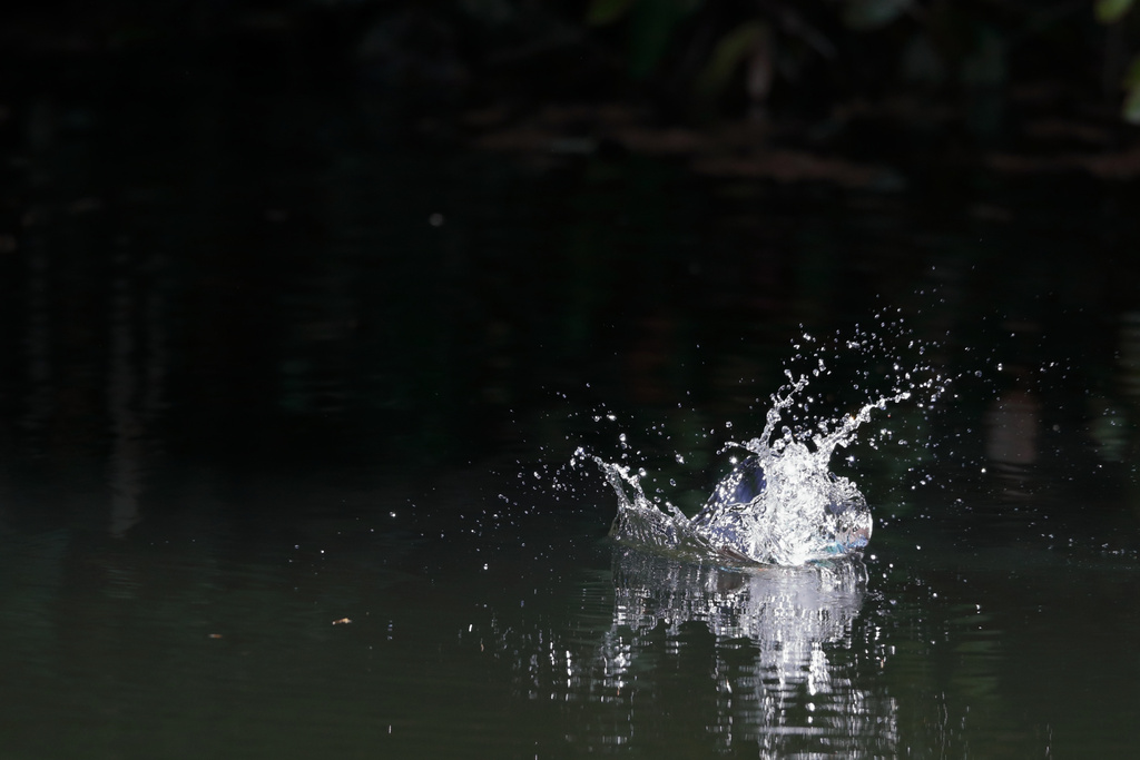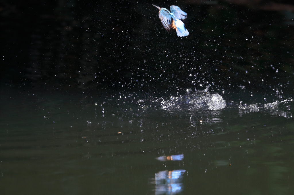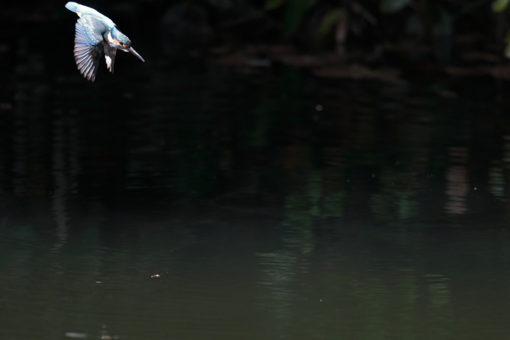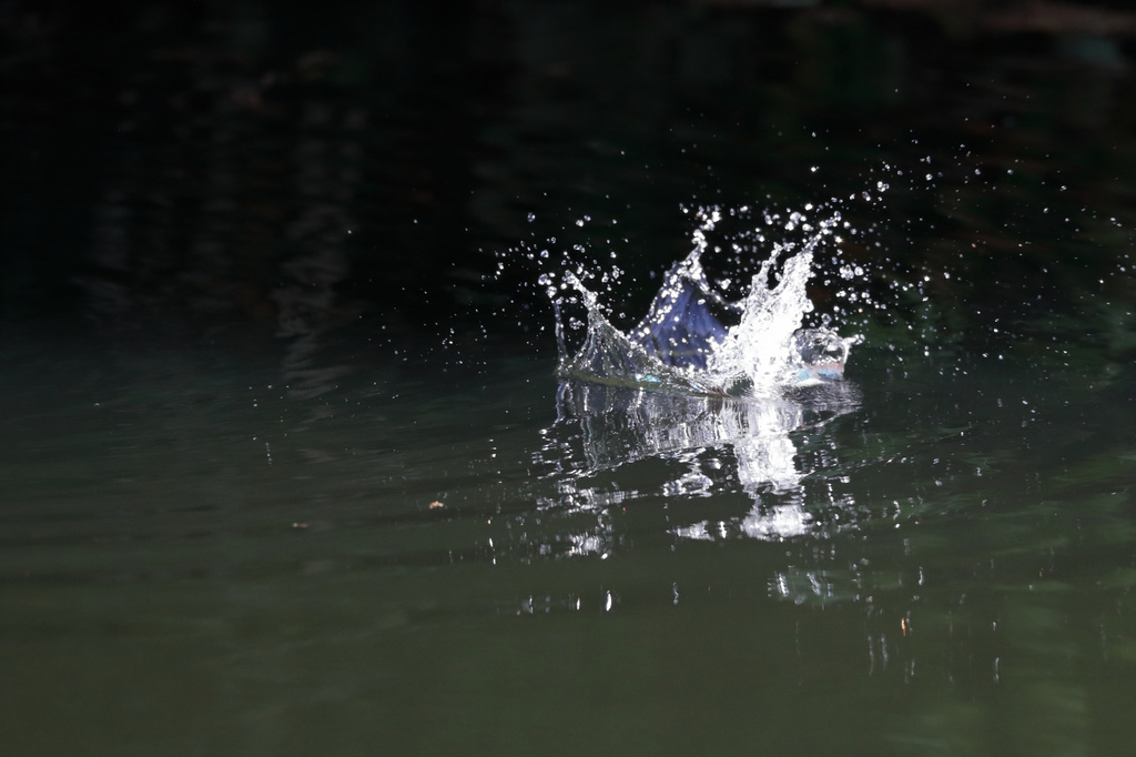 まだファインダーなどで追いかける技術はないのでカワセミの見てる方向から飛び込み場所を大体想定して置きピンで撮りましたが悪くない感じです。
