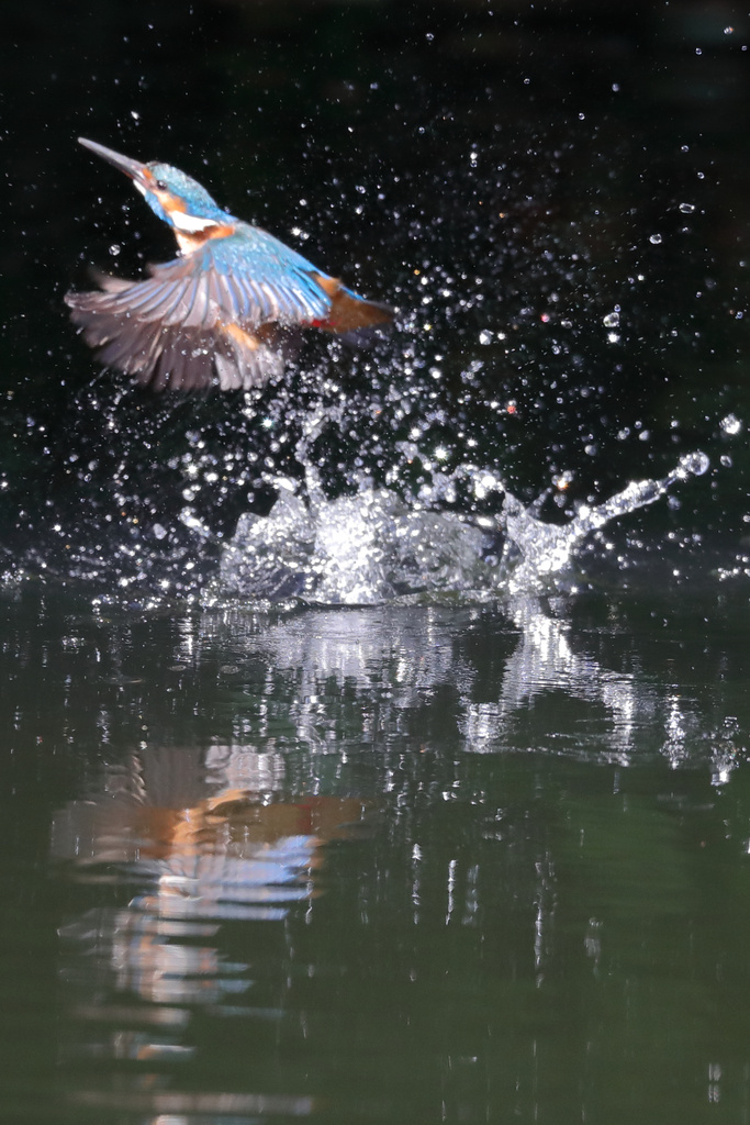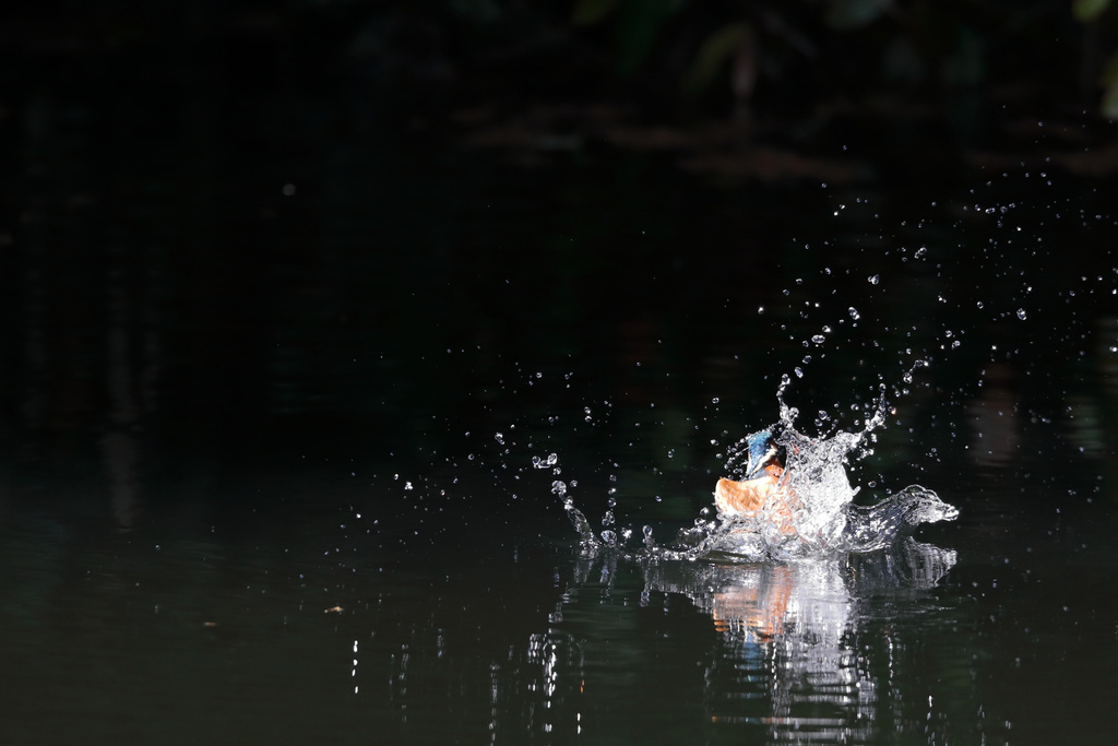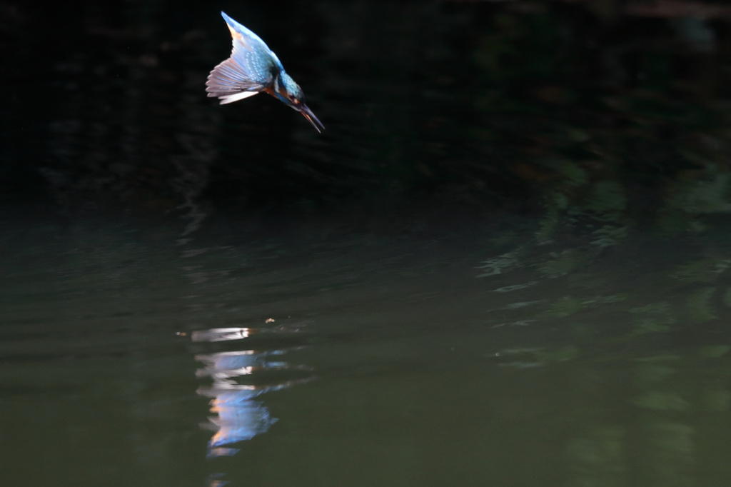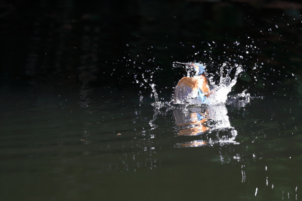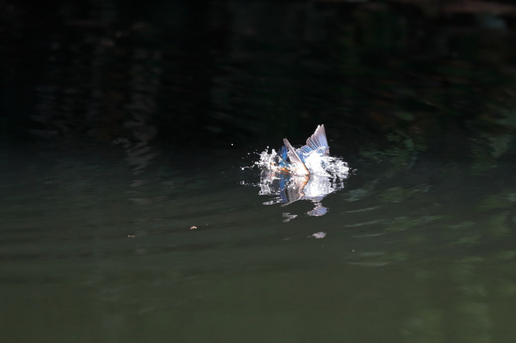 まだファインダーなどで追いかける技術はないのでカワセミの見てる方向から飛び込み場所を大体想定して置きピンで撮りましたが悪くない感じです。