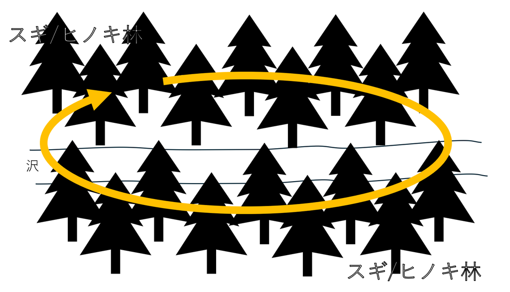 できれば沢の近くのスギ林やヒノキ林を少し高い位置から見渡すことのできる場所が撮影しやすいように思います。
