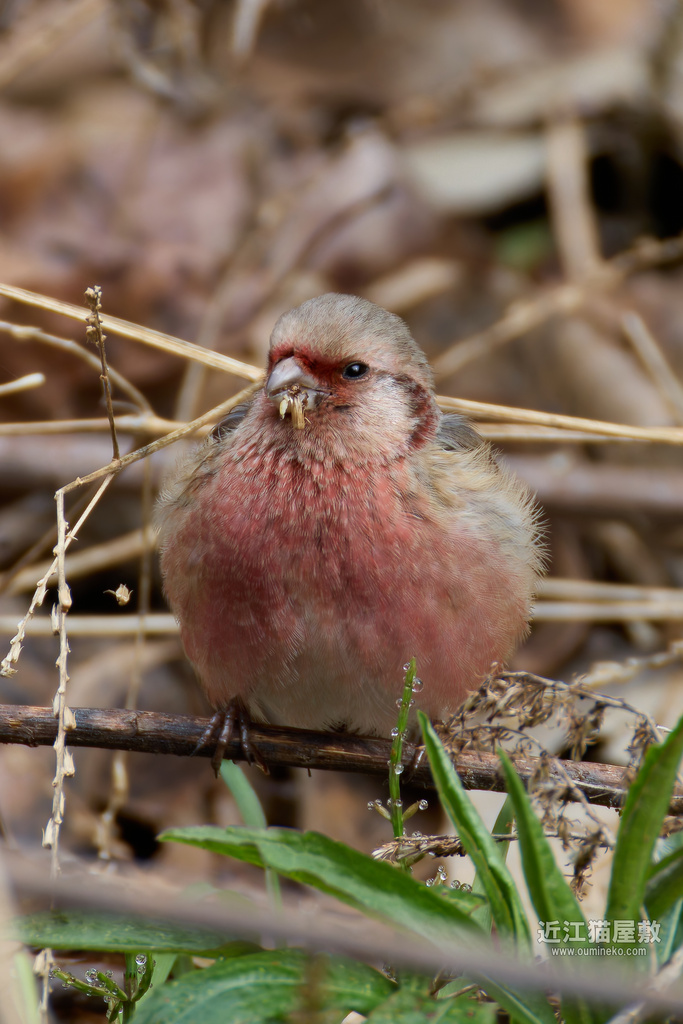 ここのベニマシコはひたすら枯草になっている花や種のようなものをむしゃむしゃ食べてます。