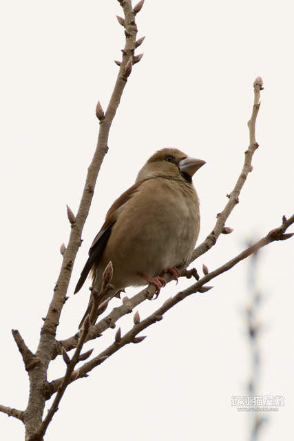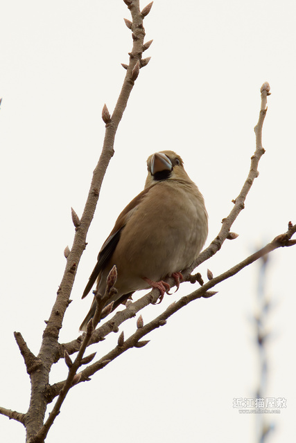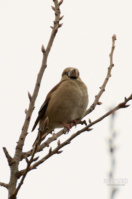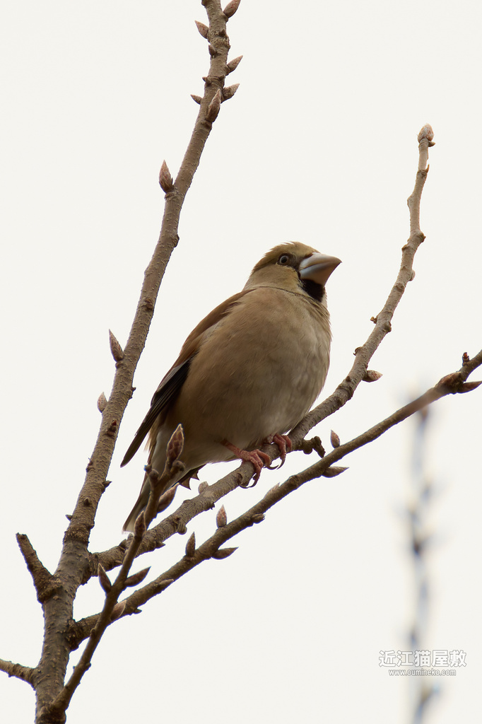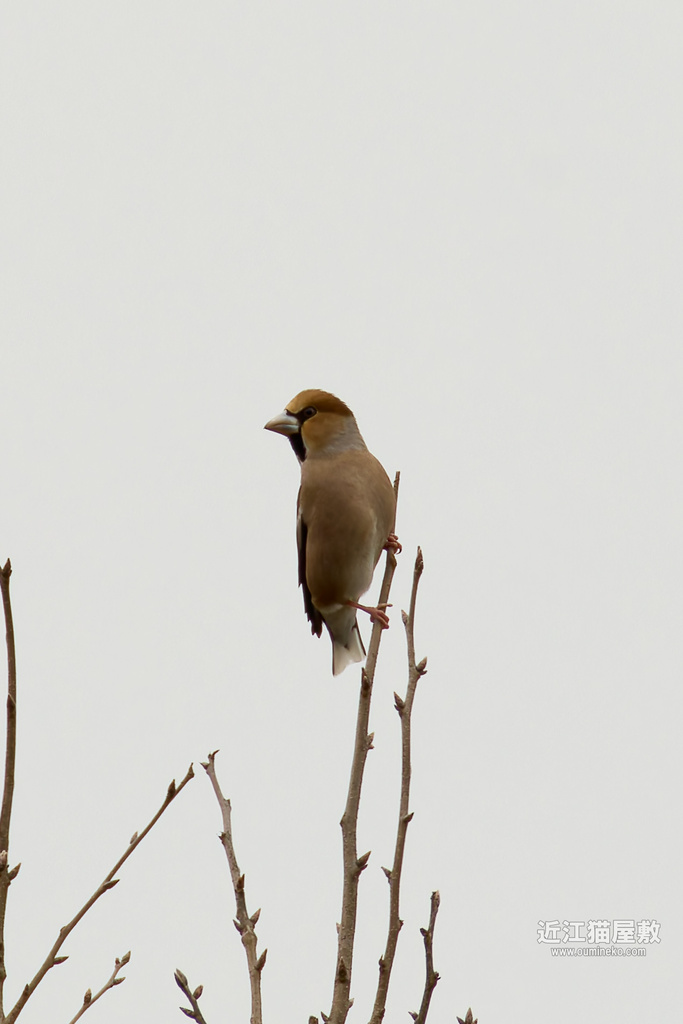 離れたところにも別のシメが木のてっぺんで囀ってました。