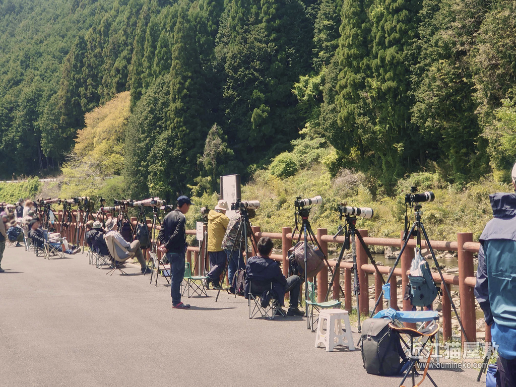 これだけ大人数がカメラを構えていると、ヤマセミが飛んで来たら「キタ!」と誰かが叫んでくれます。