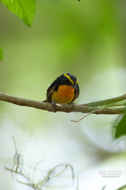 この時期のキビタキは鳴かない個体が多いので、サンコウチョウを撮っていて「あれ?なにか小さいのがとまったな」と思ったらキビタキかコサメビタキだったりします。
