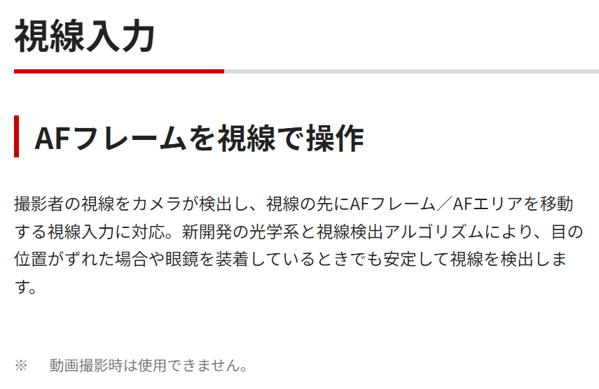 AFエリアを視線で動かせればフレームの中に被写体がいればどこからでもトラッキングAFを開始できるので、シャキシャキ正確に反応するならば面白そうです。