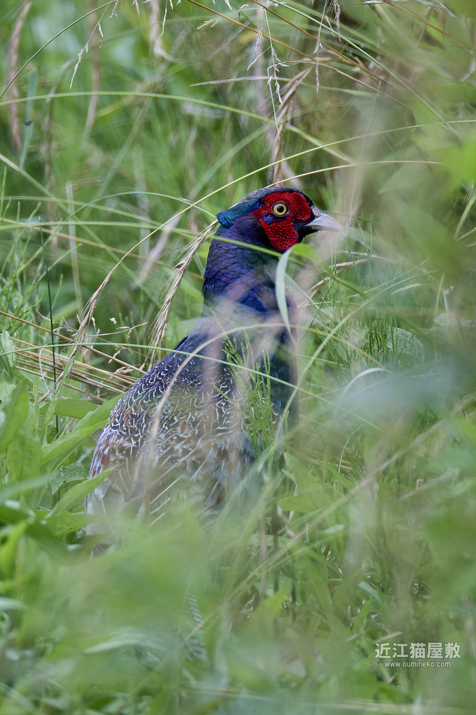 車で田舎道を走っていたら、ひょっこりと突っ立っているキジ(♂)がみえたので車をとめてパシャリ。