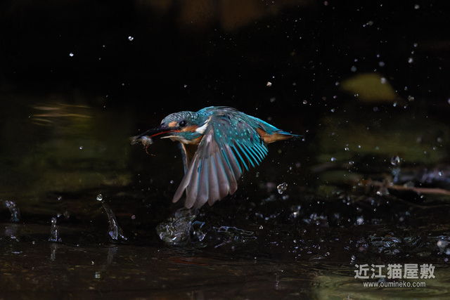 水しぶきとカワセミが同じようなピント距離なので、こういうパターンは基本的にちゃんと撮れます。