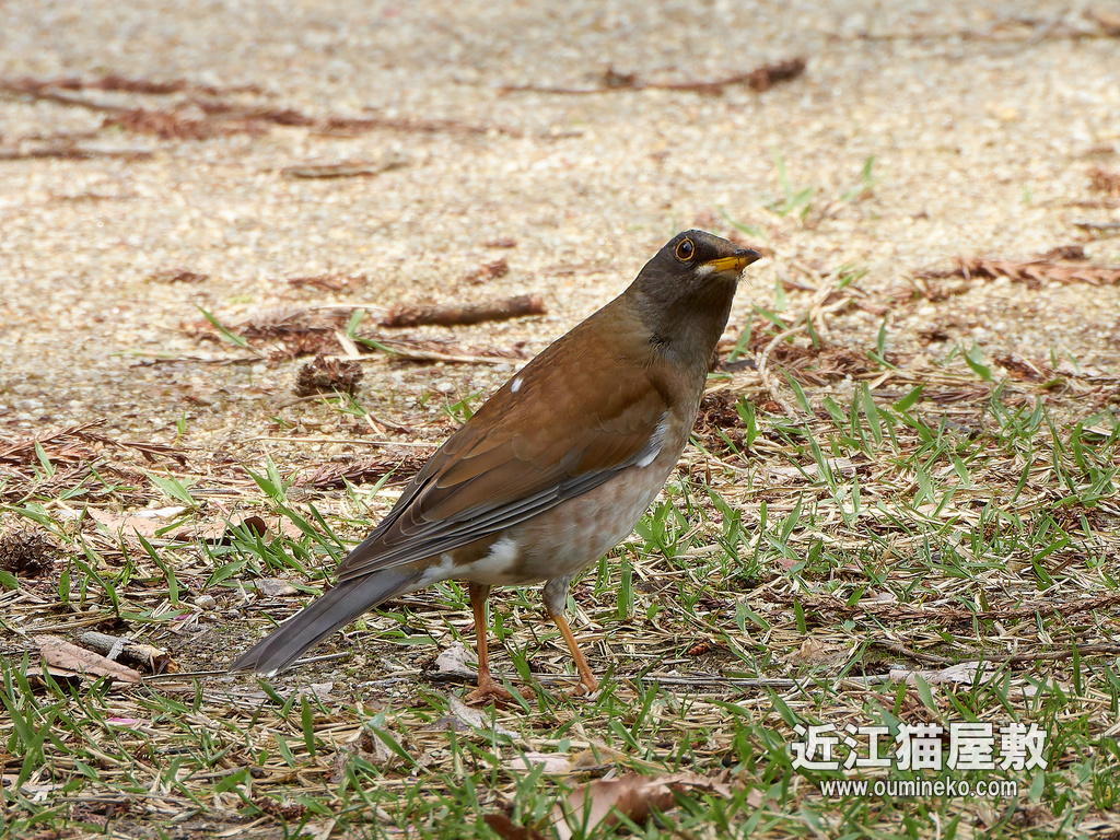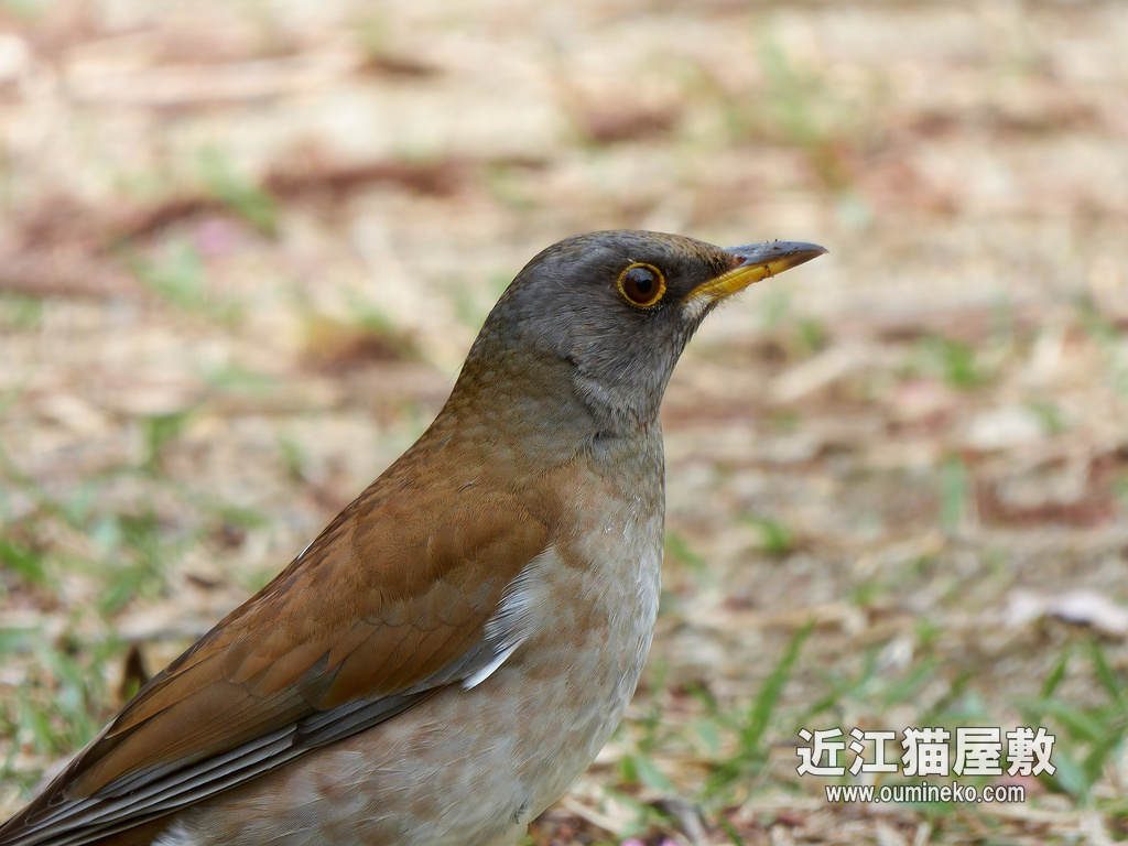 田んぼの近くを通ると必ずと言っていいほど出会うツグミ。