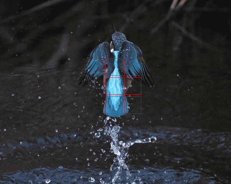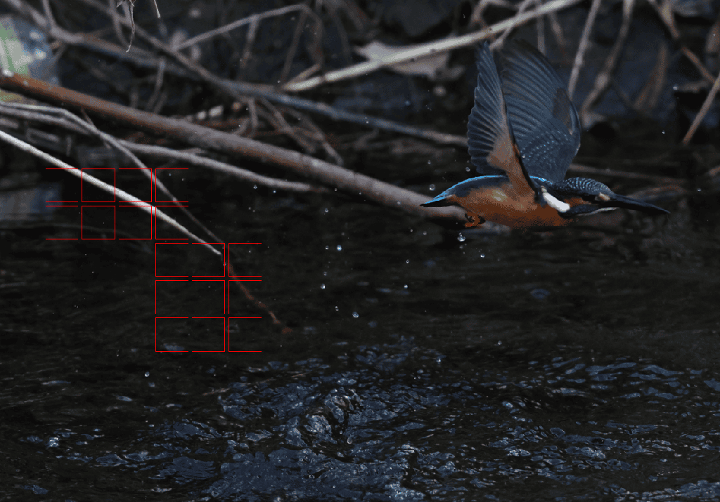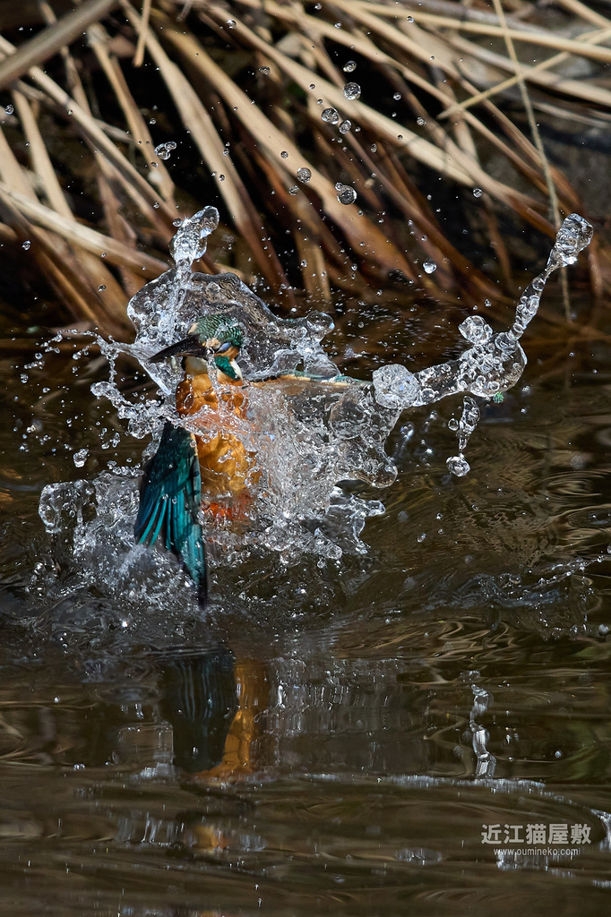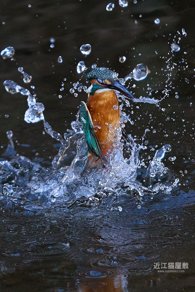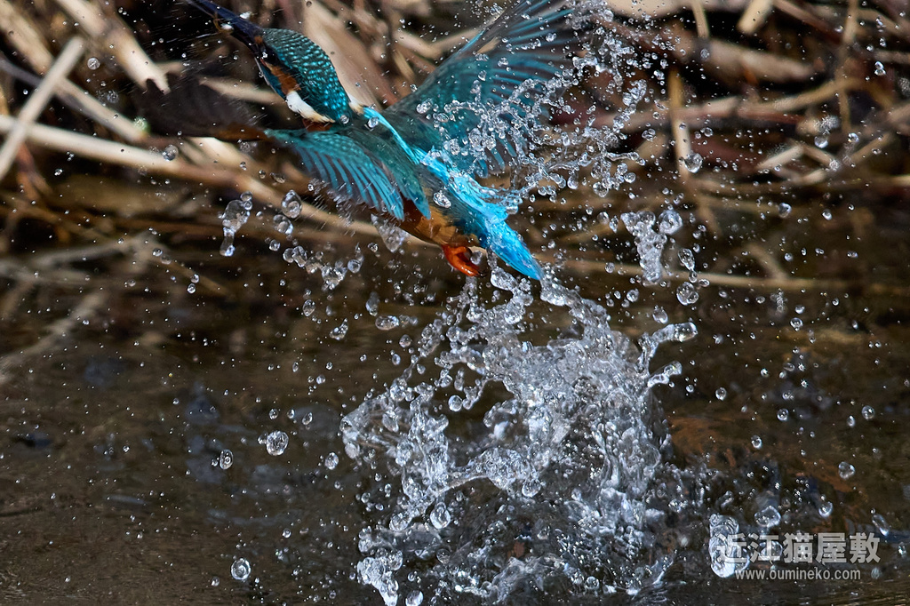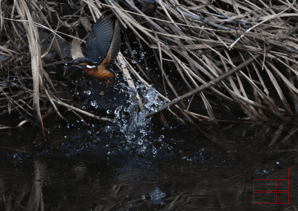 水しぶきごとカワセミを「面」でとらえてくれることが多くて、結構ピントが合いました。