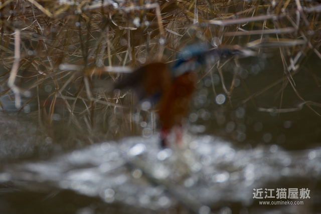 カワセミというよりは水面の波紋の方に合ってるので、後半になるとまた外れてきますが。