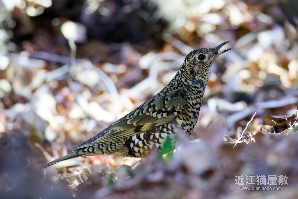 トラツグミも基本的にツグミやシロハラなんかと同じで、落ち葉の敷き詰められた場所でひたすら落ち葉をひっくり返して獲物をさがしていますので、そういう場所を適当に。