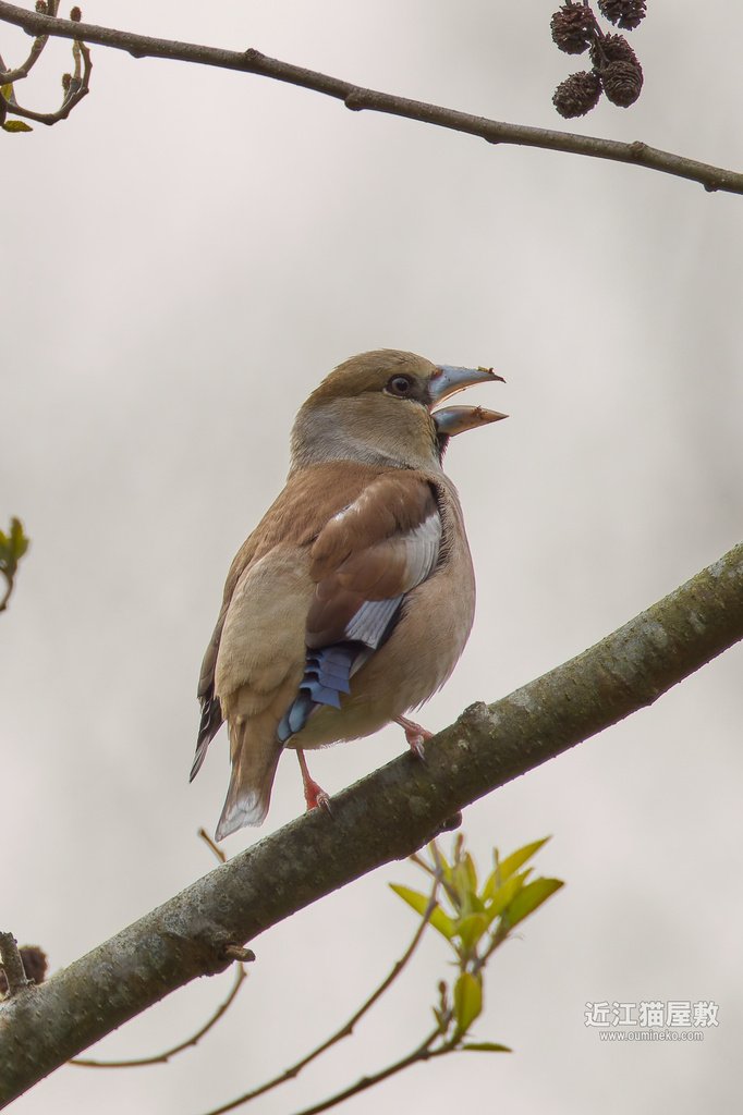 一時期はベニマシコが迎えてくれたのですが、最近はシメが出迎えてくれます。