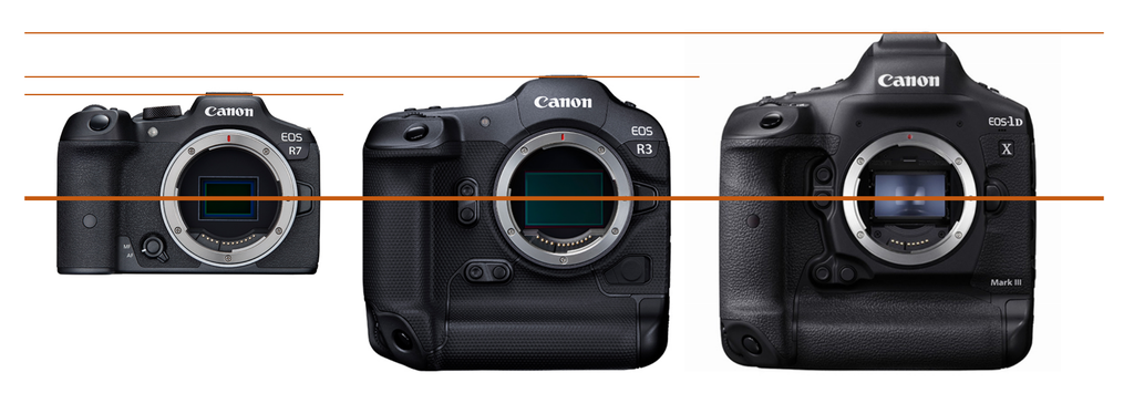 EOS R3はEOS-1D X mark IIIと違ってペンタ部がないので、マルチアクセサリシューがセンサー中心から低い位置にあります。
