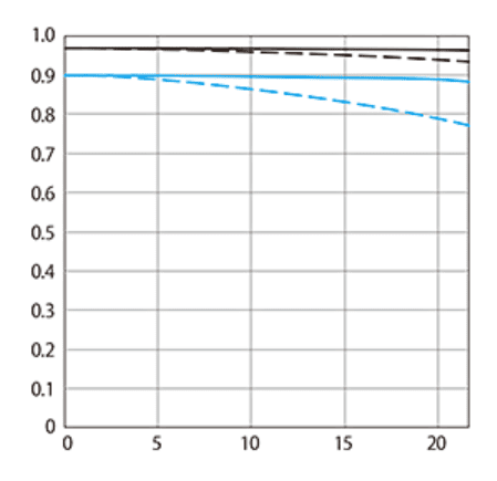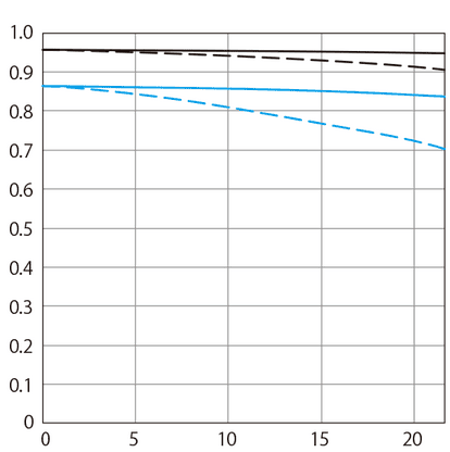 「30本/mmが0.8以上スタート、S(放射方向)はほぼ変化しない、M(同心円方向)は15mmまでの間に-0.1までの落差」