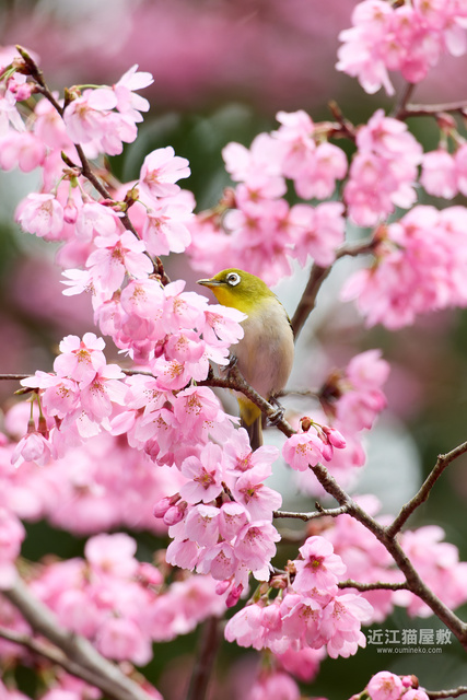 この時期はウメや桜など鮮やかな花と一緒に撮影できるので、狙ってみると良いかもしれず。