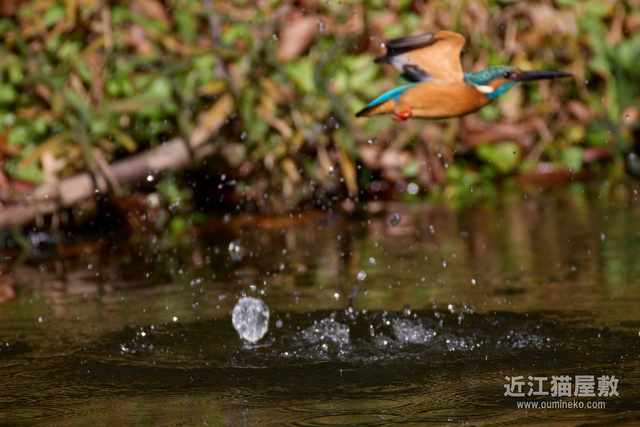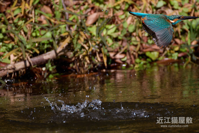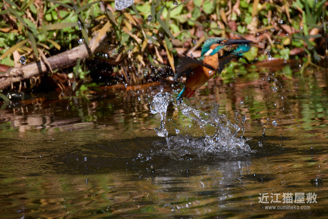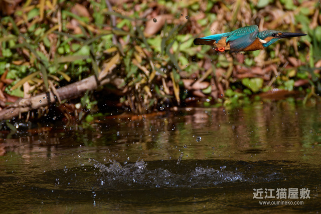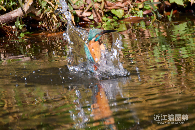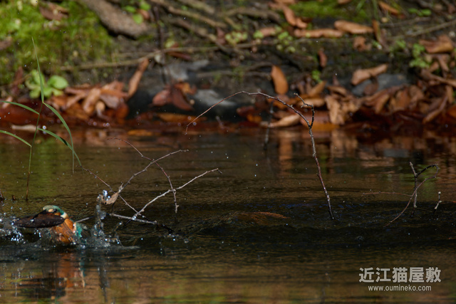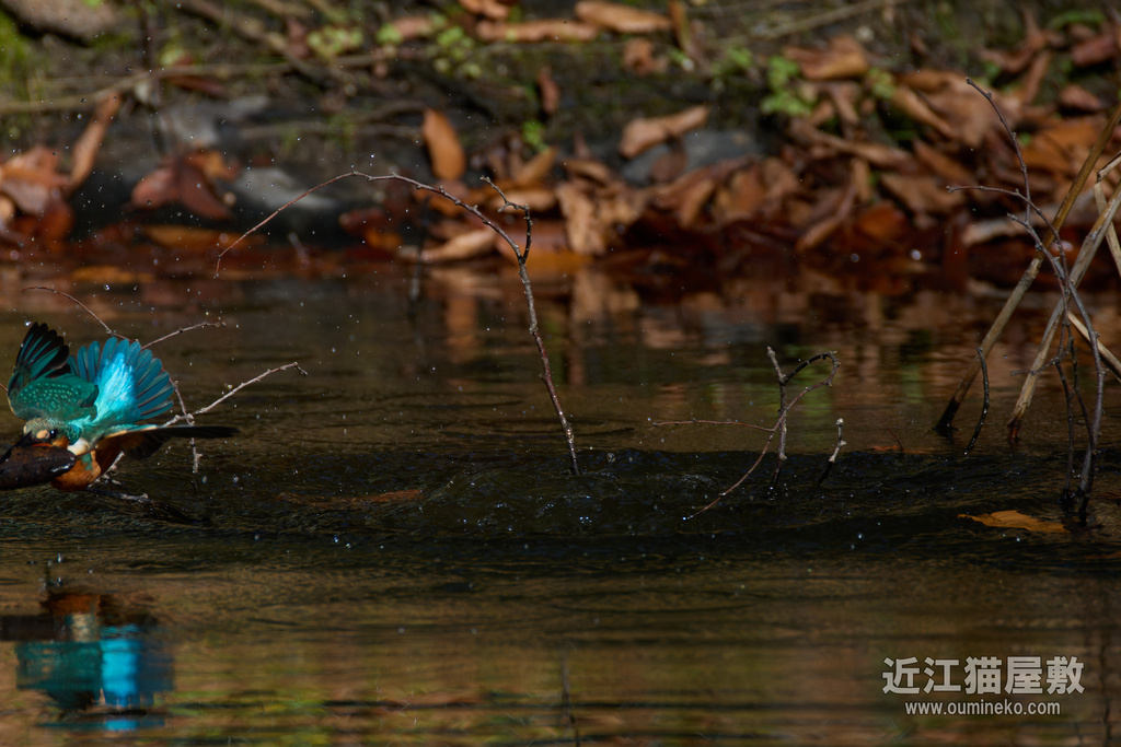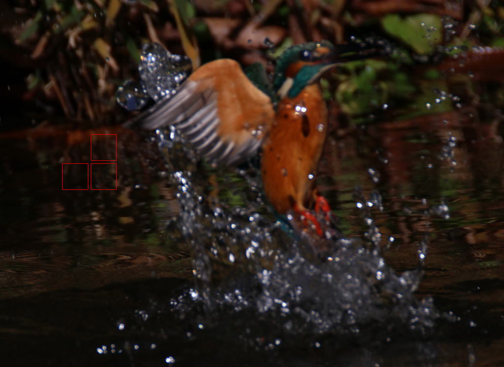 で、多分シャッター切ったときに連写されず、カワセミが2段階浮上し始めてようやくシャッターが切られたと。
