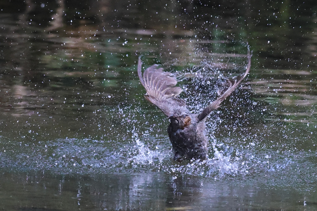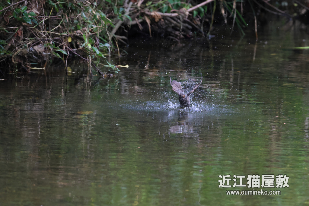 なんとなくなのですが、ここではよくカワセミが飛び込んでいるので真似してる気もします。
