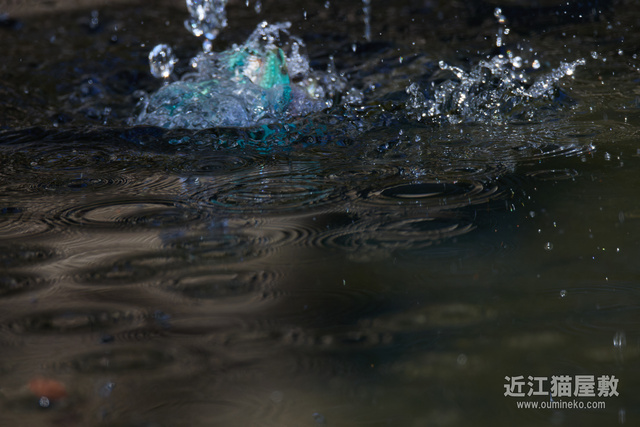 このときは着水時にド真ん中にカワセミをとらえていたのですが、シャッターボタンをおしてから0.6~0.7秒くらいシャッターが切られず。