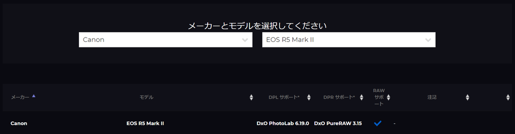 その前にDxO PureRAW3.15をダウンロードしてインストールしてEOS R5 mark IIに対応しているのは確認したので、その時に共通DLLなりが更新されててPureRAW4でも使えるようになっただけ、とかだったら嫌ですが...まぁ使えるようになったのでヨシ。