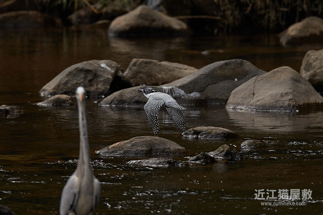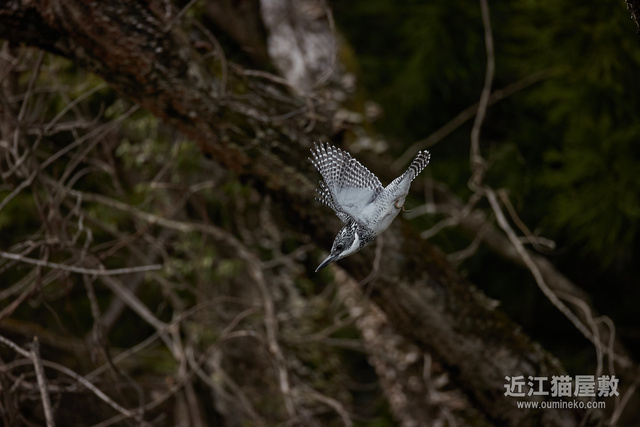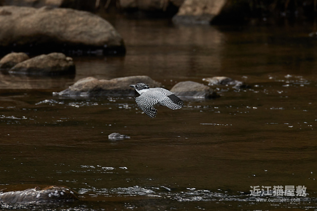 このあと、肝心のヤマセミ様は水には飛び込まずに方向転換して飛び去って行きました :P