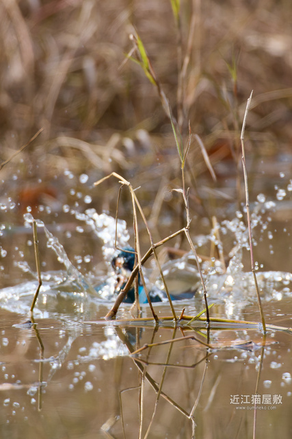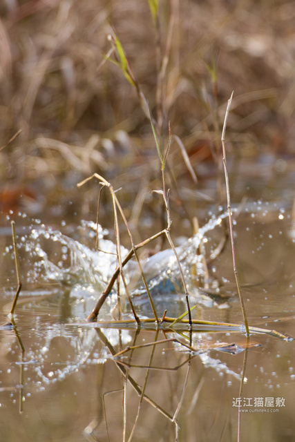 不運なことに飛び込み自体は手前の草にピントを持っていかれましたが、手前の草にはちゃんとピントがあってますね。