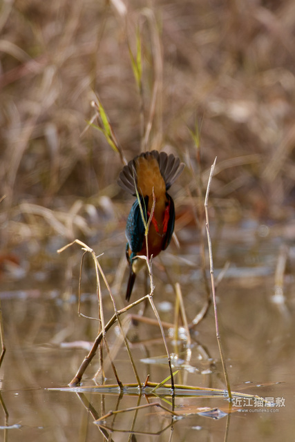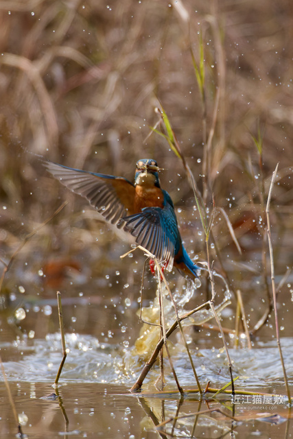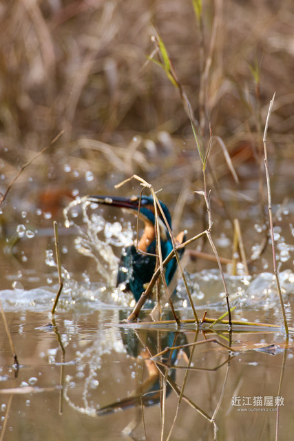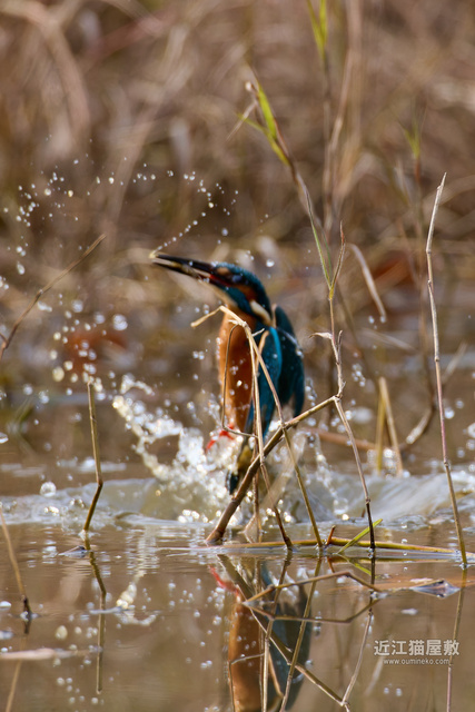 残念ながらこの後に、数コマフレームからカワセミが外れてデフォーカス状態になって飛び込みはボケボケでした。