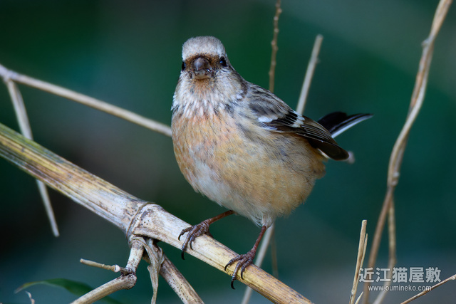 ベニマシコも、正面から見ると白っぽく見えますね。