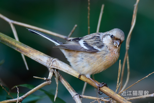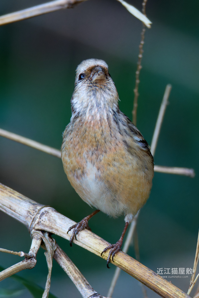 ちょっと赤みがかっているのでベニマシコ♂の幼鳥かなという気がします。