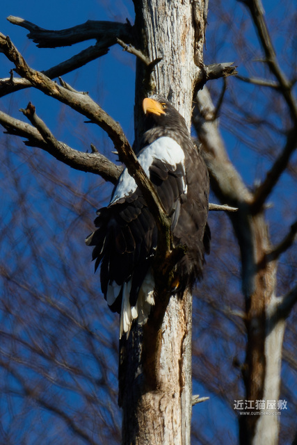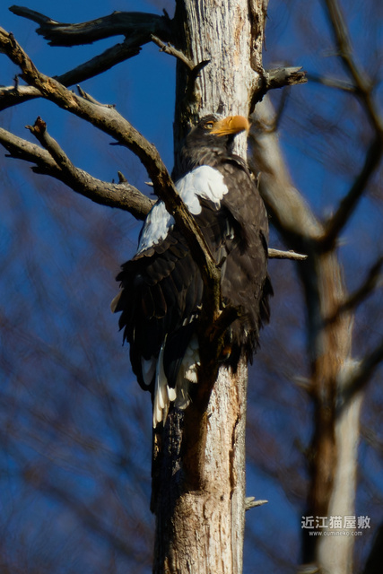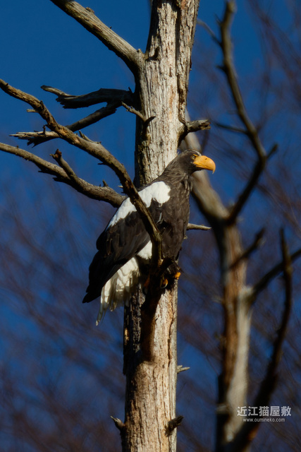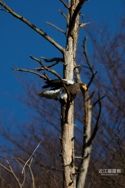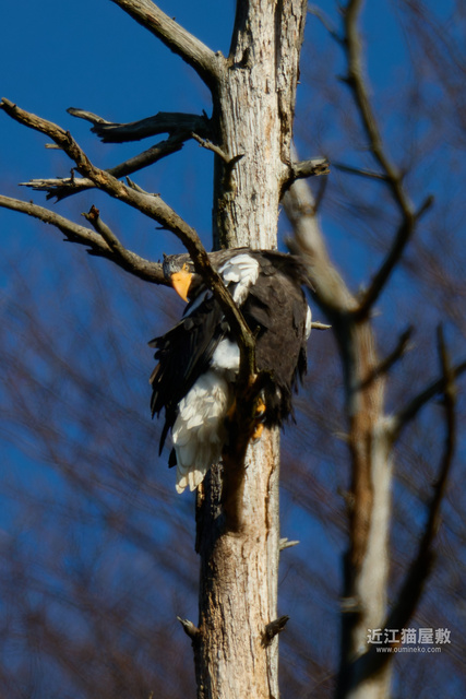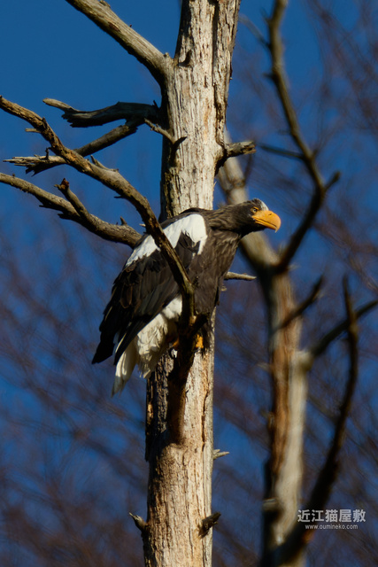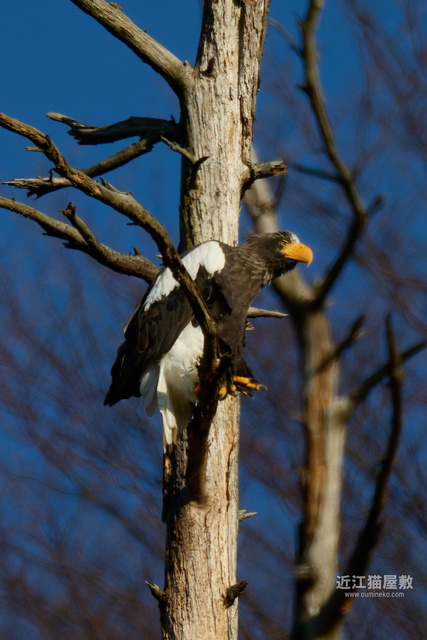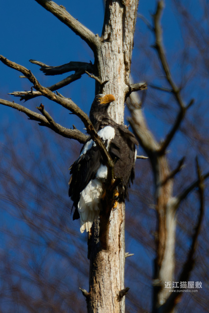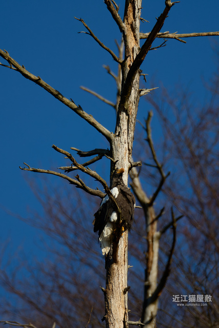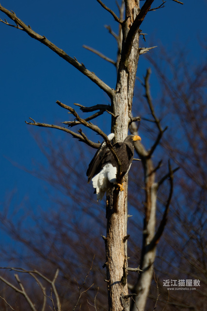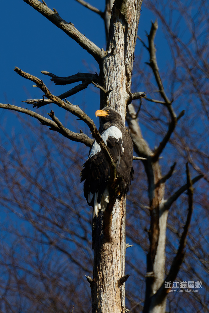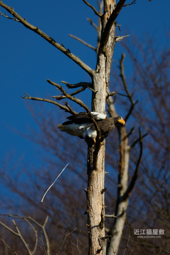オオワシは非常に大きいので距離の目算を誤りガチなのですが、距離は100mくらいあります。